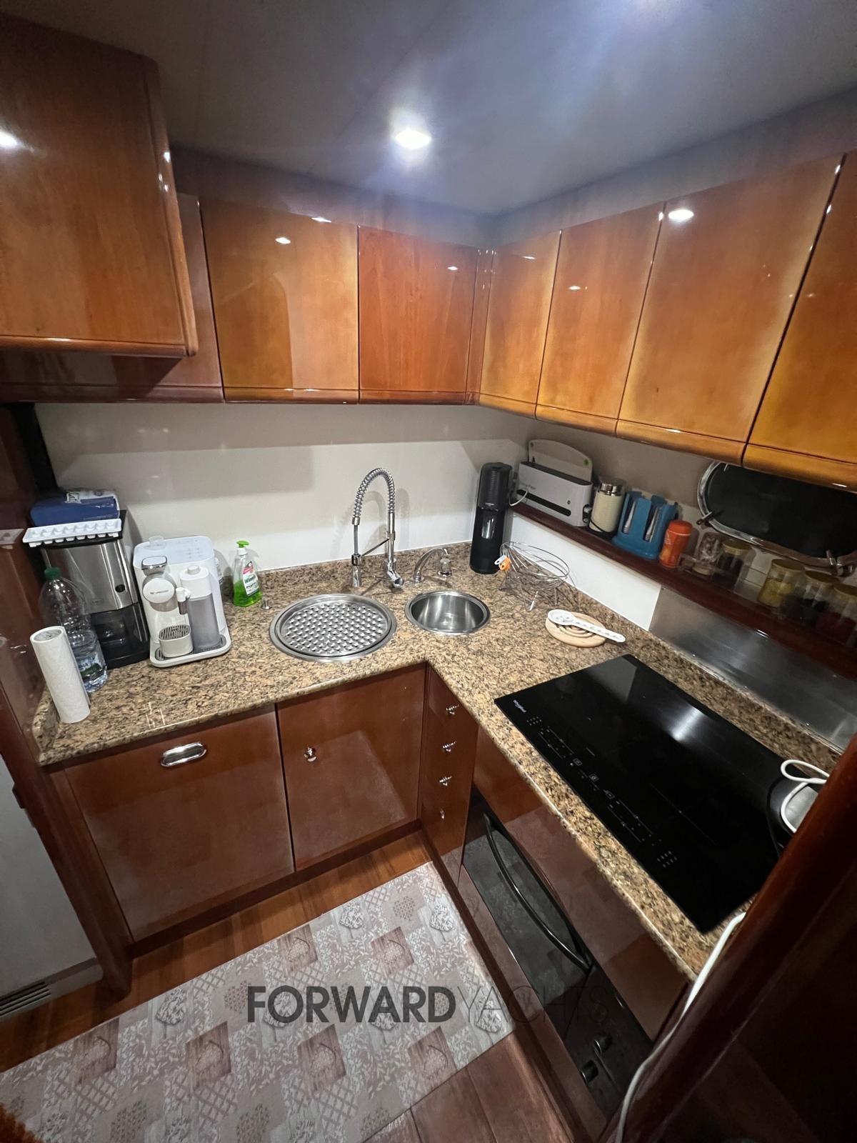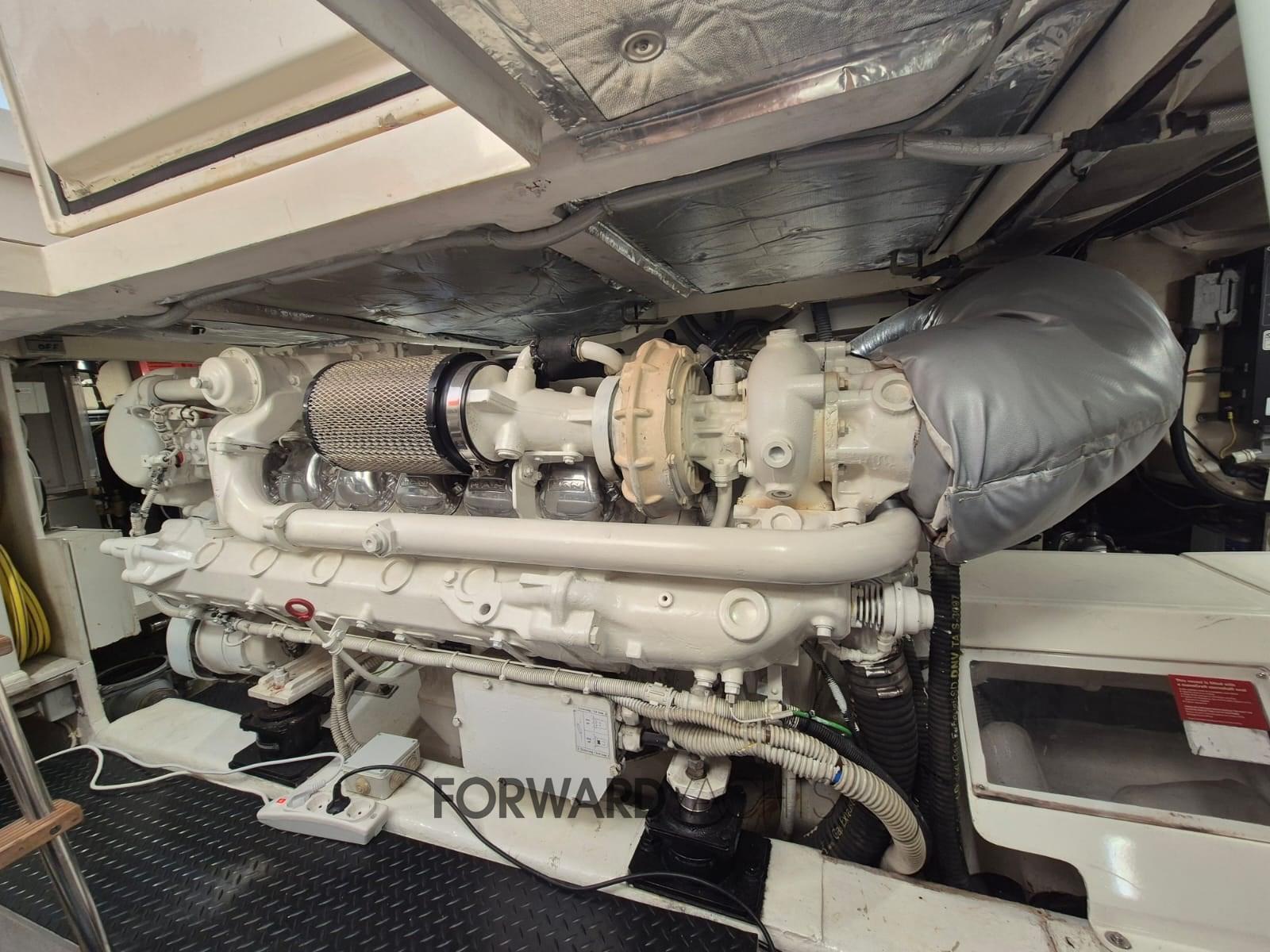 Comparé au modèle standard, ce Ferretti 620 est équipé de : un générateur double kholer et un moteur MAN surdimensionné de 1240 ch (au lieu de 1050 ch).