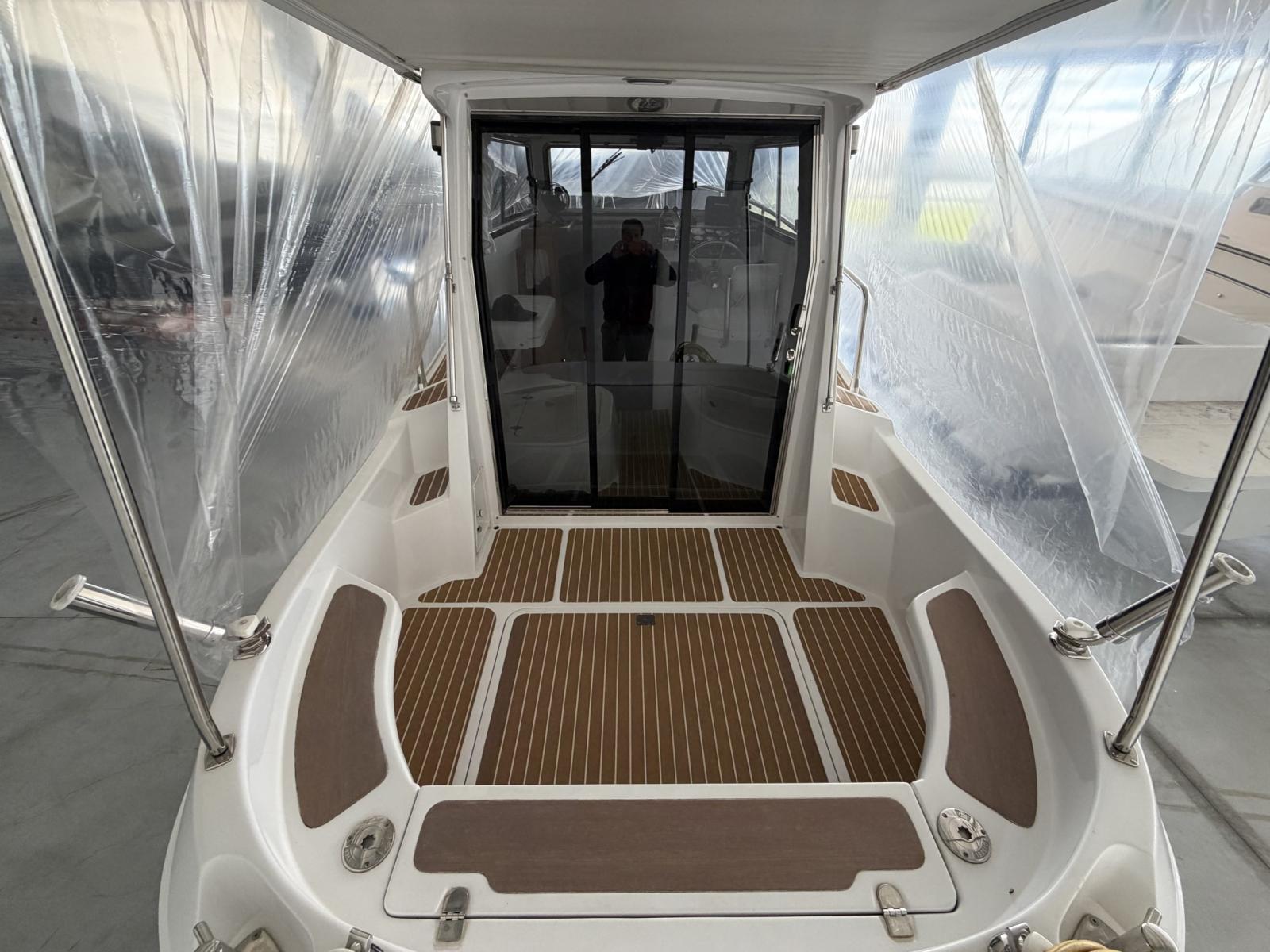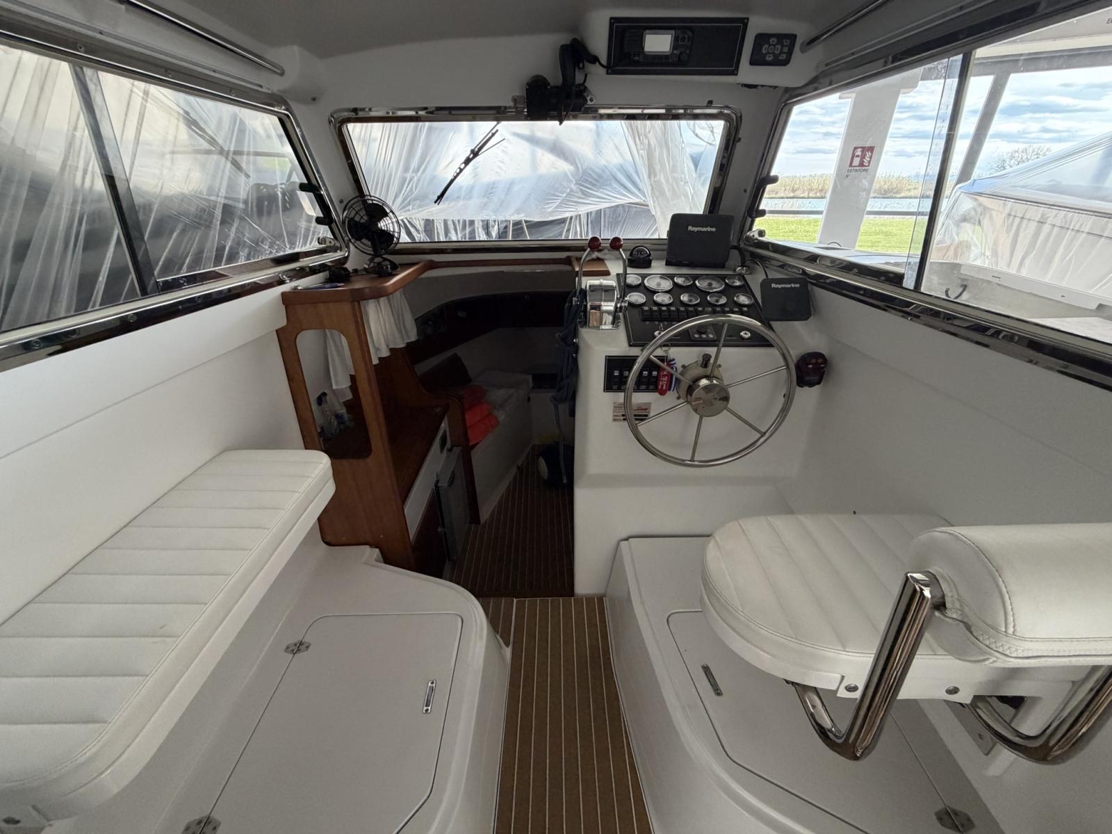 Alarme gaz, Alarme moteur, Alarme de pompe de cale, Douche de cockpit, Flaps fixes, Flaps hydrauliques, Pompe de cale automatique, Pompe de cale manuelle, Pont en teck, Porte latérale, Cockpit en teck, Prise de quai, Guindeau électrique.