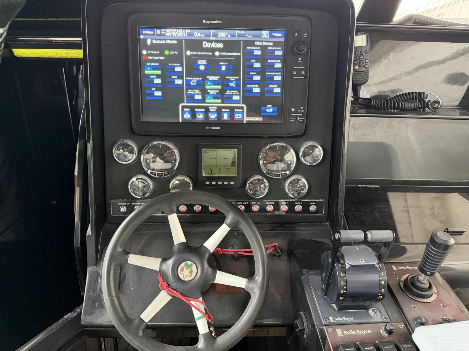 Indicateur d'angle de barre, Moniteur, Joystick, Moniteur de consommation, Plotter GPS, Siège copilote.