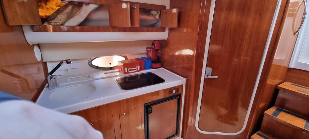 Alarme moteur, Ouverture du compartiment moteur électrique, Eau sous pression, Douche de cockpit, Flaps électriques, Flaps hydrauliques, Extincteur(s) fixe(s), Lavabo dans le cockpit, Éclairage de courtoisie, Passerelle, Plateforme arrière, Pompe de cale automatique, Prise de quai, Onduleur, Rollbar, Guindeau électrique, Echelle de bain, table de cockpit, Corne, Winch électrique avant.