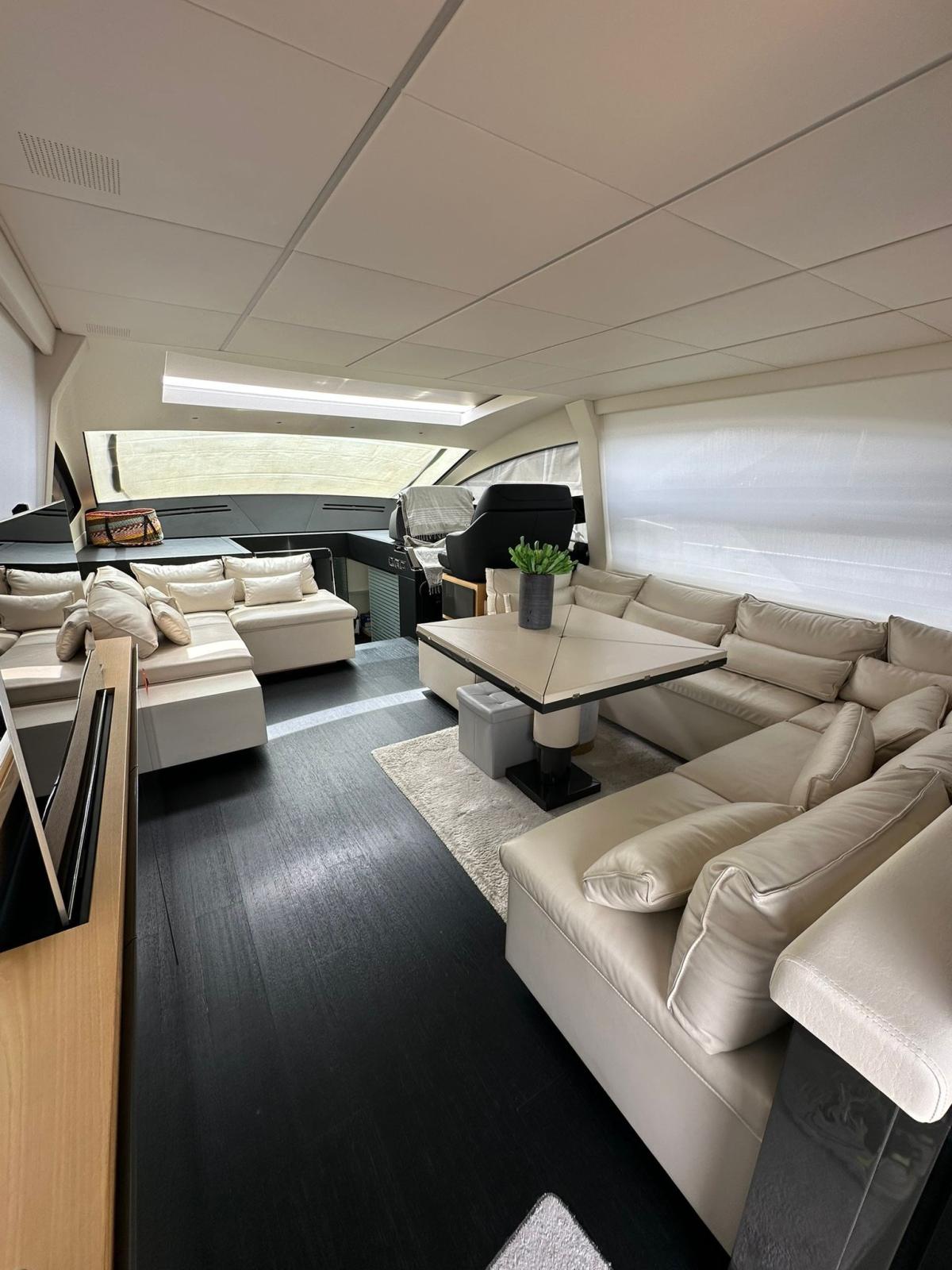 Alarme moteur, Alarme de pompe de cale, Alternateur, Eau sous pression, Taquets pliants, Passavant en teck, Douche de cockpit, Phare de poursuite, Flaps hydrauliques, Garage à annexe, Hard top, Extincteur(s) fixe(s), Indicateurs de flaps, Lavage de chaine, Lavabo dans le cockpit, Éclairage de courtoisie, Spots sous-marins, Passerelle, Plateforme arrière, Pompe de cale automatique, Pompe de cale manuelle, Pont en teck, Porte latérale, Cockpit en teck, Prise de quai, Guindeau électrique, Echelle de bain, Stabilisateurs, table de cockpit, Corne, 2 Winch électrique arrière.