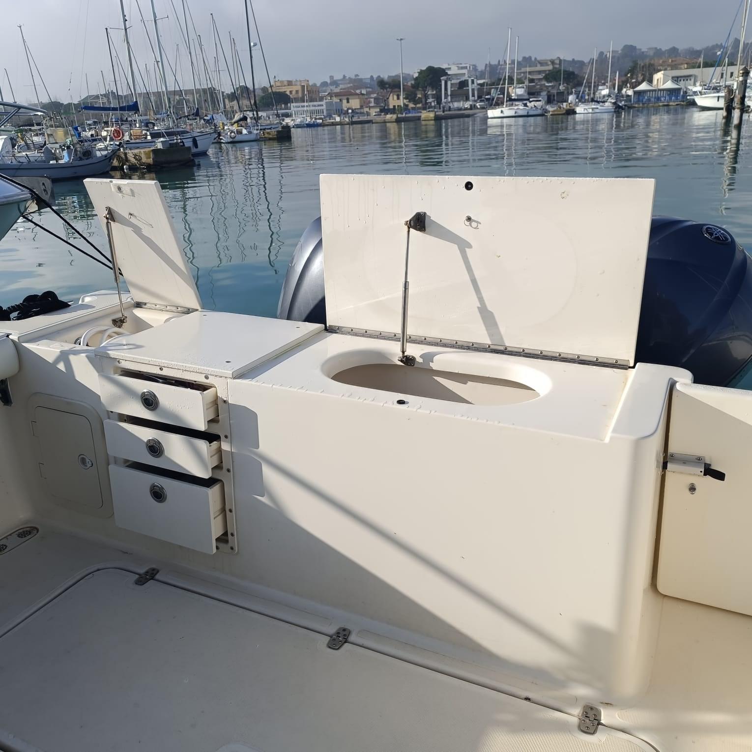 Alarme moteur, Alternateur, Eau sous pression, Câble d’alimentation à quai, Douche de cockpit, Flaps électriques, Éclairage de courtoisie, Pompe de cale automatique, Pompe de Lavage du Pont, Pompe à Eau de Mer, Prise de quai, Corne, T-Top.