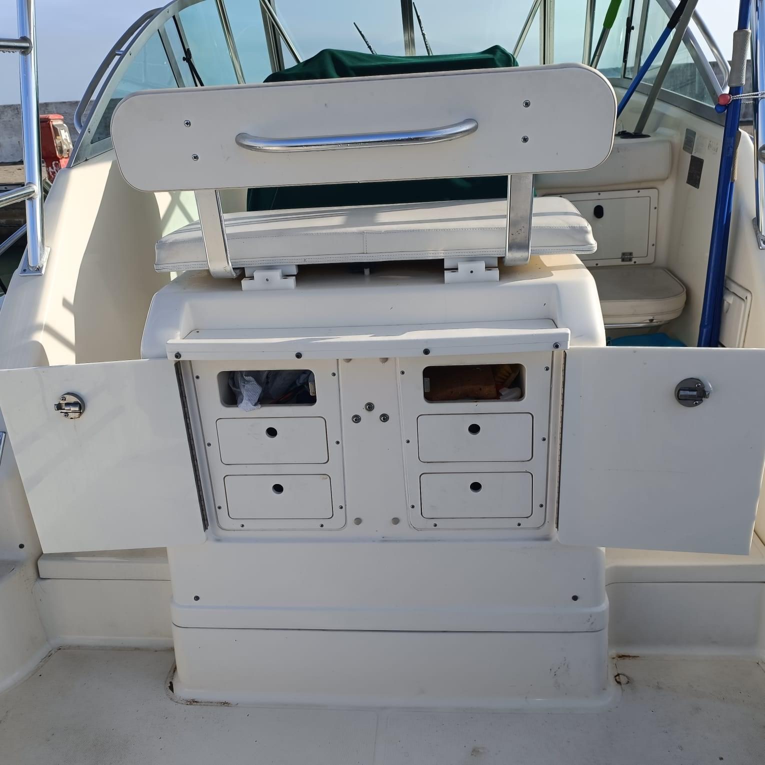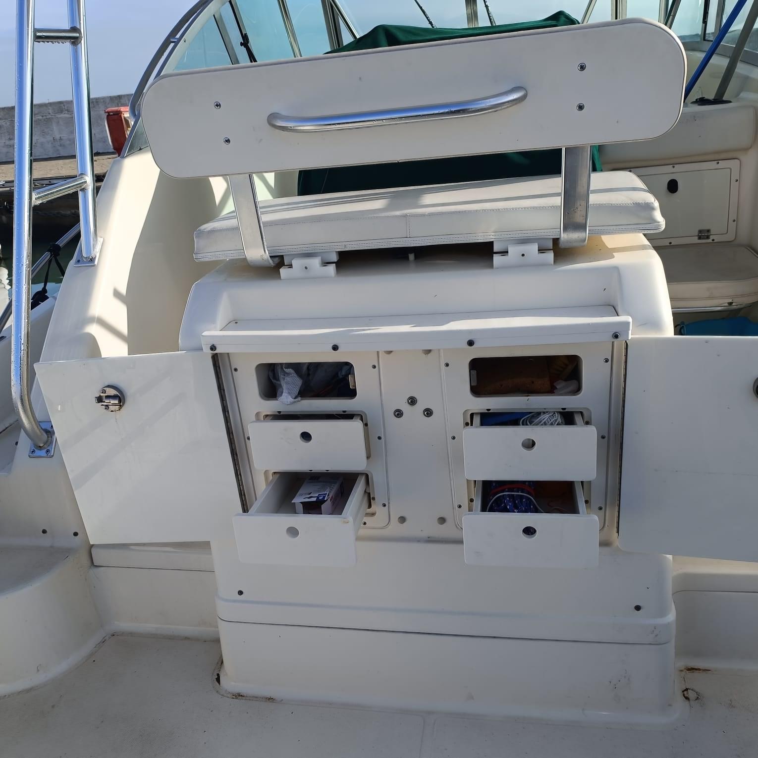 Indicateur d'angle de barre, Antenne radar, Commande électrique, DSC VHF, Moniteur de consommation, Plotter GPS, Panneau de commande, Siège copilote, Instruments de mesure pour moteurs.