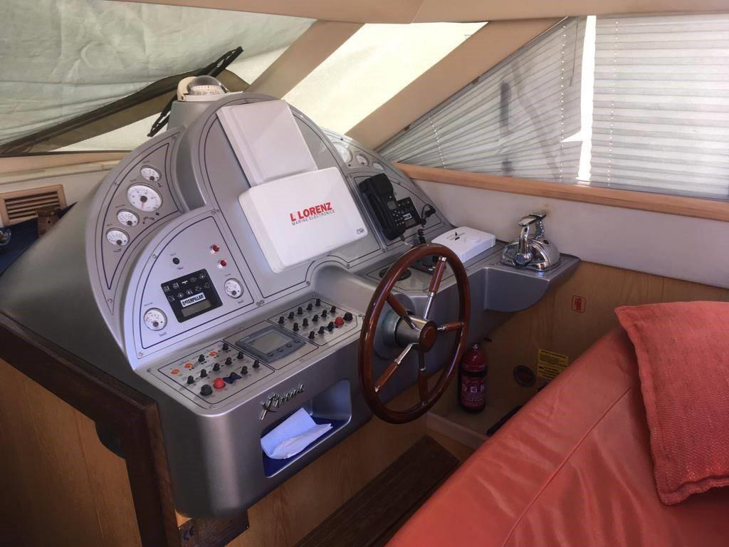 Alarme moteur, Alarme de pompe de cale, Eau sous pression, 9 Batteries, Passavant en teck, Couleur spéciale (SCAFO BRONZO E TUGA ARGENTO "VERSIONE EXTREME"), Douche de cockpit, Phare de poursuite (ELETTRICAMENTE), Flaps hydrauliques, Hard top (APRIBILE ELETTRICAMENTE), Extincteur(s) fixe(s), Éclairage de courtoisie, Passerelle (IDRAULICA), Plateforme arrière, Pompe de cale automatique, Pompe de cale manuelle, Porte latérale, Cockpit en teck, Prise de quai, Guindeau électrique, Echelle de bain, Corne.