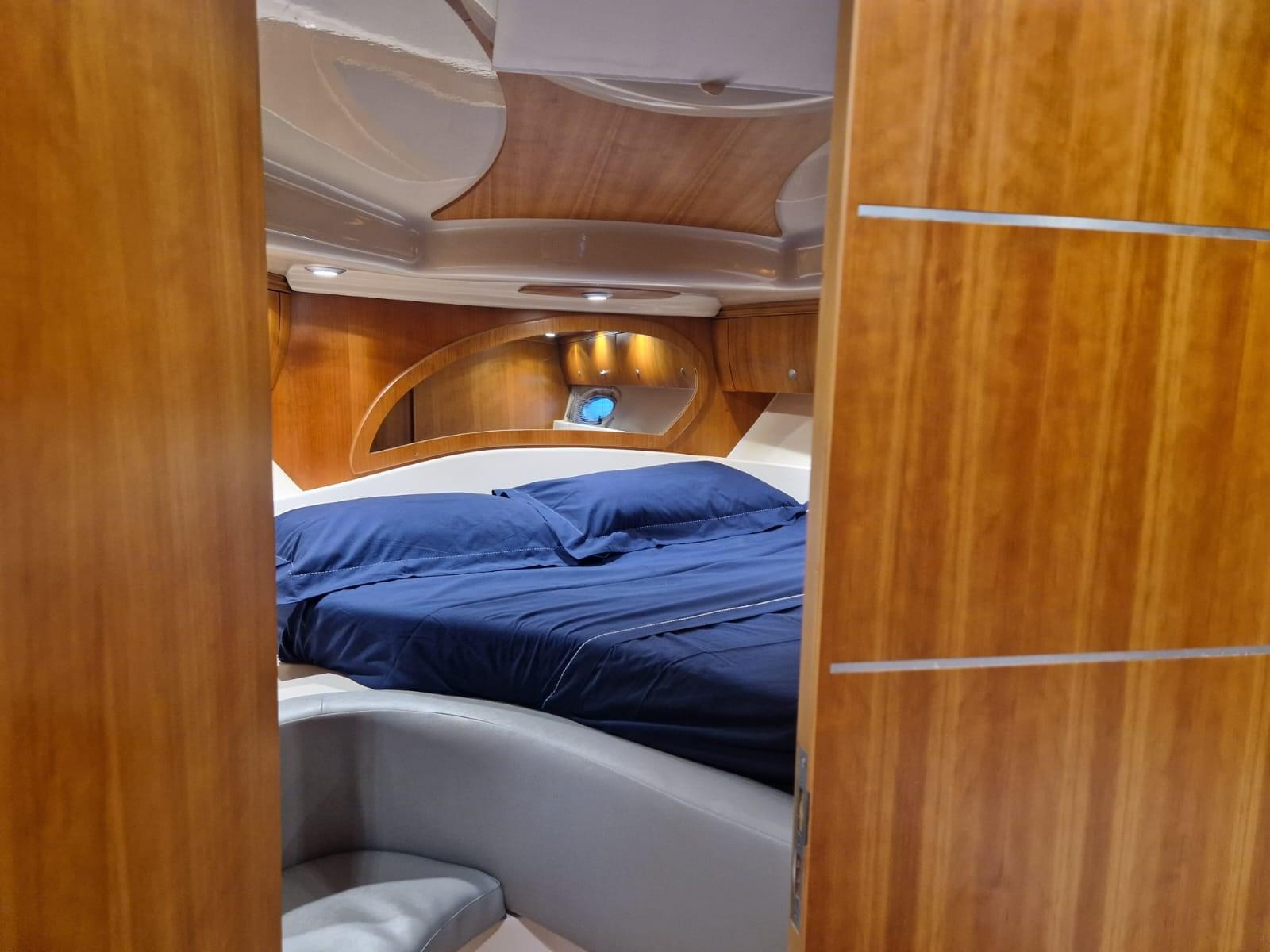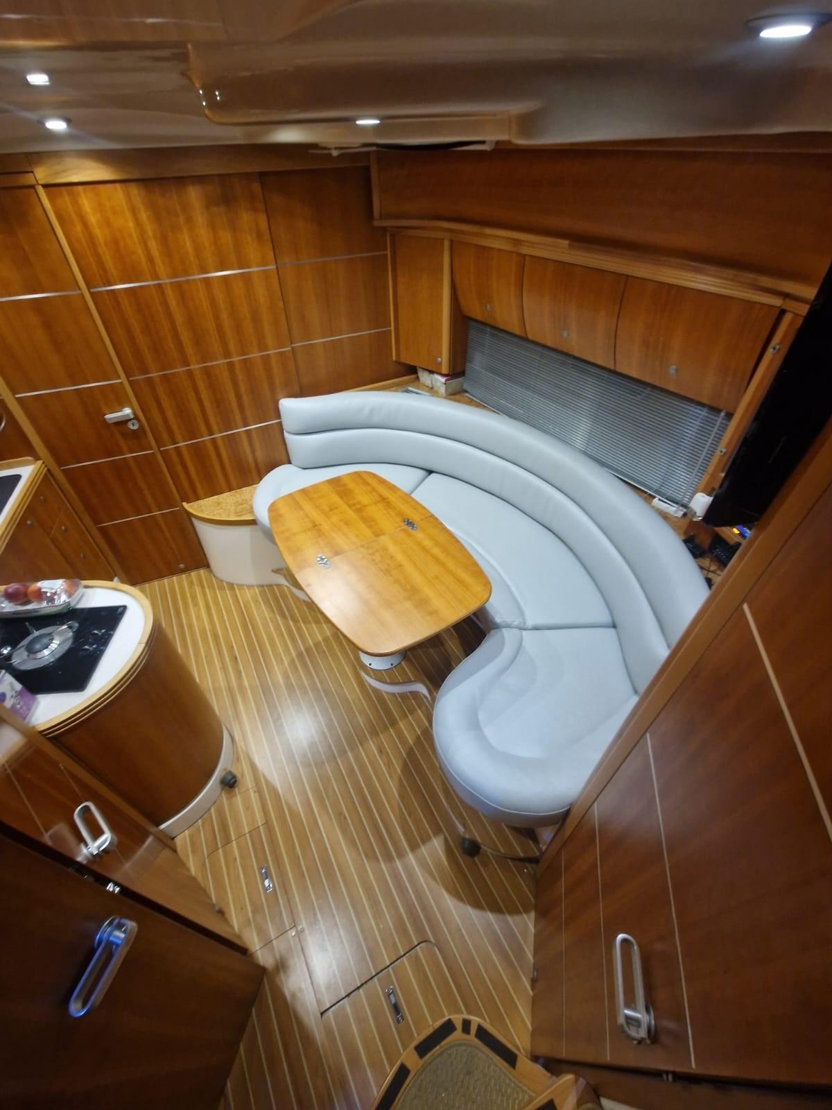 Alarme moteur, Alternateur, Eau sous pression, Couleur spéciale, Douche de cockpit, Phare de poursuite, Flaps hydrauliques, Garage à annexe, Lavabo dans le cockpit, Éclairage de courtoisie, Pompe de cale automatique, Pompe de cale manuelle, Cockpit en teck, Onduleur, Rollbar, Guindeau électrique, Echelle de bain, table de cockpit, Table pliante de salon, Filières avec sortie latèrale, Corne.