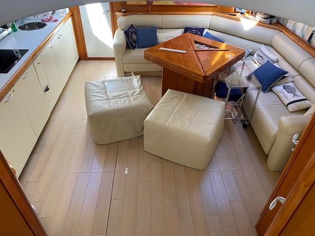 Alarme de pompe de cale, Eau sous pression, Passavant en teck, Couleur spéciale, Douche de cockpit, Phare de poursuite, Flaps hydrauliques, Hard top, Extincteur(s) fixe(s), Spots sous-marins, Plateforme arrière, Pompe de cale automatique, Cockpit en teck, Prise de quai, Guindeau électrique, Echelle de bain, table de cockpit, Winch électrique arrière.