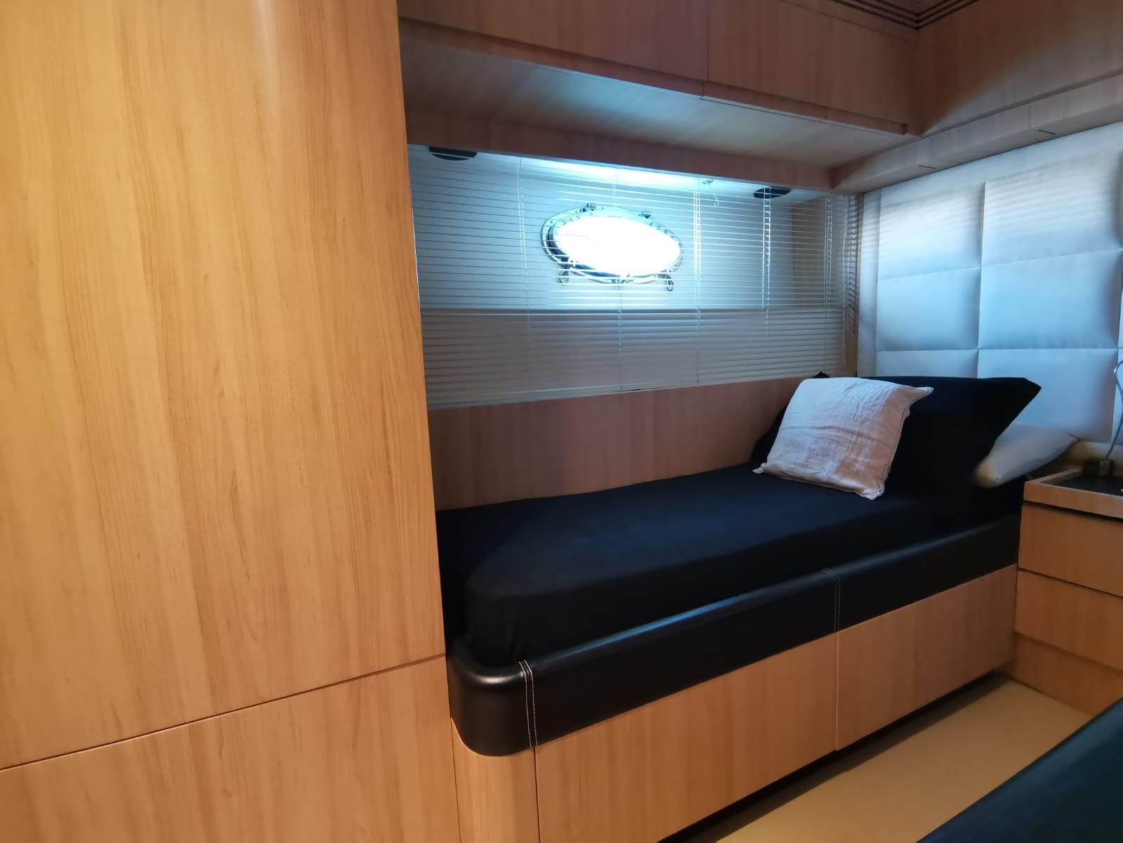Alarme gaz, Alarme moteur, Alarme de pompe de cale, Eau sous pression, Passavant en teck, Couleur spéciale, Douche de cockpit, Phares fixes arrière, Phare de poursuite, Flaps électriques, Hard top, Extincteur(s) fixe(s), Indicateurs de flaps, Lavage de chaine, Éclairage de courtoisie, Spots sous-marins, Passerelle, Plateforme arrière, Porte latérale, Cockpit en teck, Prise de quai, Connexion eau sous pression à quai, Onduleur, Répétiteur électronique, Guindeau électrique, Echelle de bain, table de cockpit, Filières avec sortie latèrale, Corne, Winch électrique arrière, Winch électrique avant.