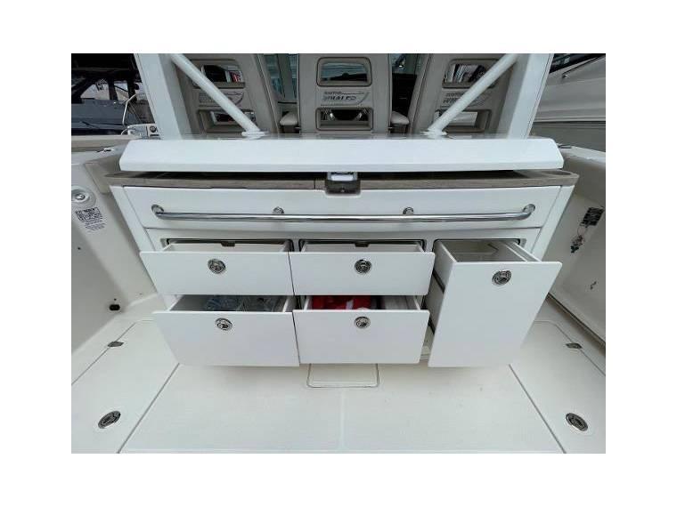 Alarme moteur, Alarme de pompe de cale, Ancre (in acciaio), Eau sous pression, Trim hydraulique, Taquets pliants, Douche de cockpit, Phare de poursuite, Flaps électriques, Lavabo dans le cockpit, Éclairage de courtoisie, Pompe de cale automatique, Pompe de cale manuelle, Prise de quai, Connexion eau sous pression à quai, Guindeau électrique, Echelle de bain, table de cockpit (e Tavolo prua elettrico), Corne.