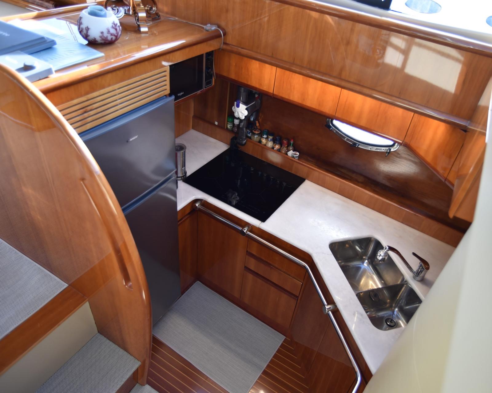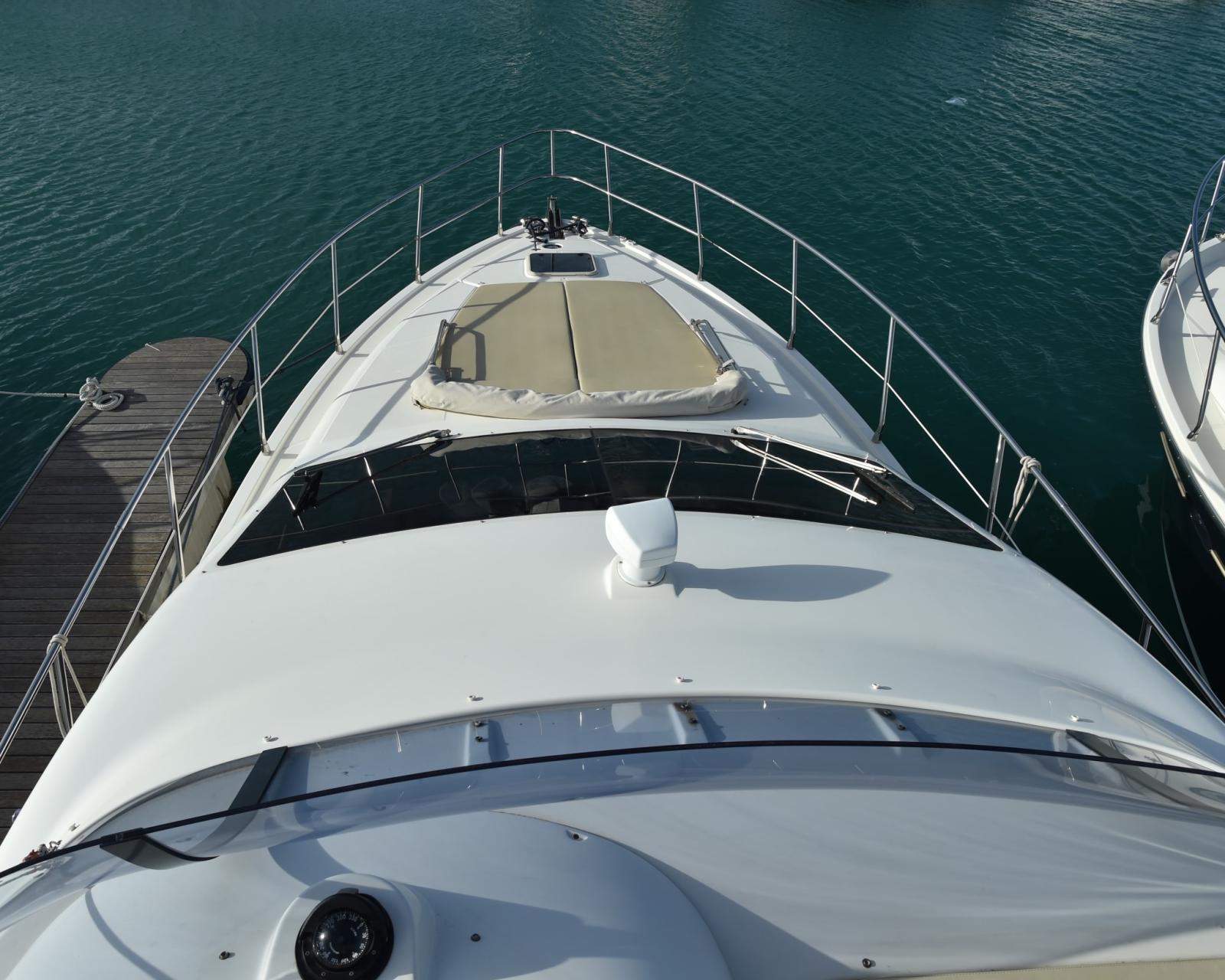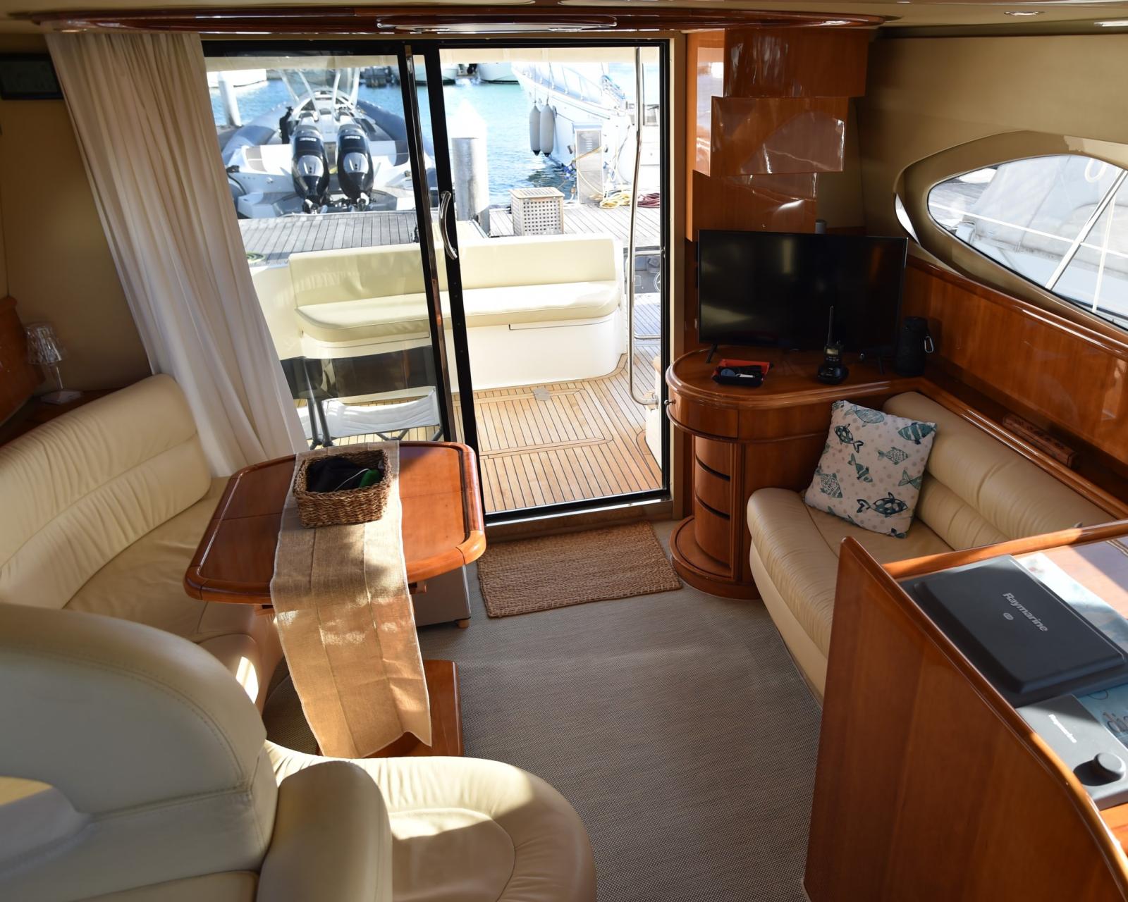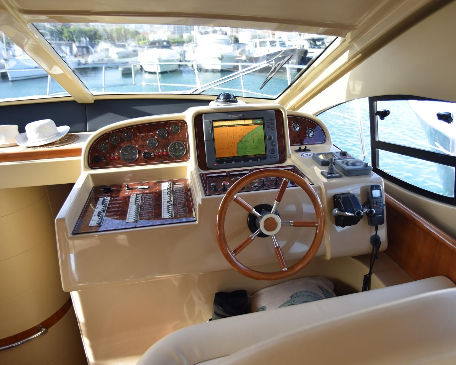 Eau sous pression, 5 Batteries, Douche de cockpit, Double barre à roue, Phare de poursuite, Passerelle (INOX BESENZONI), Pompe de cale automatique, Porte latérale, Cockpit en teck, Prise de quai, Connexion eau sous pression à quai, Guindeau électrique, Echelle de bain.