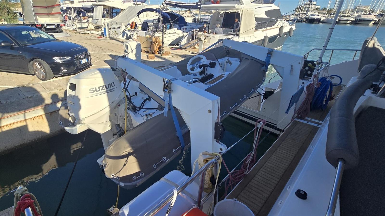 Alarme moteur, Alarme de pompe de cale, Ancre (FALCON maggiorata - 100 mt di catena e 60 mt di cima), 2 Eau sous pression, 9 Batteries (servizi VICTRON AGM 6x165ah - motori NAUTICA IB AGM 2x120ah 2025 - generatore 100ah), Chargeur de batterie (MASTERVOLT 100A), Douche de cockpit, Double barre à roue, Propulseur d'étrave (MAX POWER), Bossoirs pour annexe, Éclairage de courtoisie, Spots sous-marins, 2 Panneau solaire (RIGIDI SULLA TUGA), Passerelle (2024), 4 Pompe de cale automatique, 2 Pompe de cale manuelle, Porte latérale, Cockpit en teck, Prise de quai, Connexion eau sous pression à quai, Guindeau électrique (QUICK), Guindeau manuel, Gréement monotoron, Echelle de bain, table de cockpit, Table pliante de salon, Annexe (SUR MARINE 3,70m - Motore SUZUKI 30HP con copertura tubolari e copertura totale 2024 / Batteria 2024 / Impianto elettrico 2025), 2 Winch (LEWMAR), 2 Winch électrique (LEWMAR), Winch électrique avant, Windex.