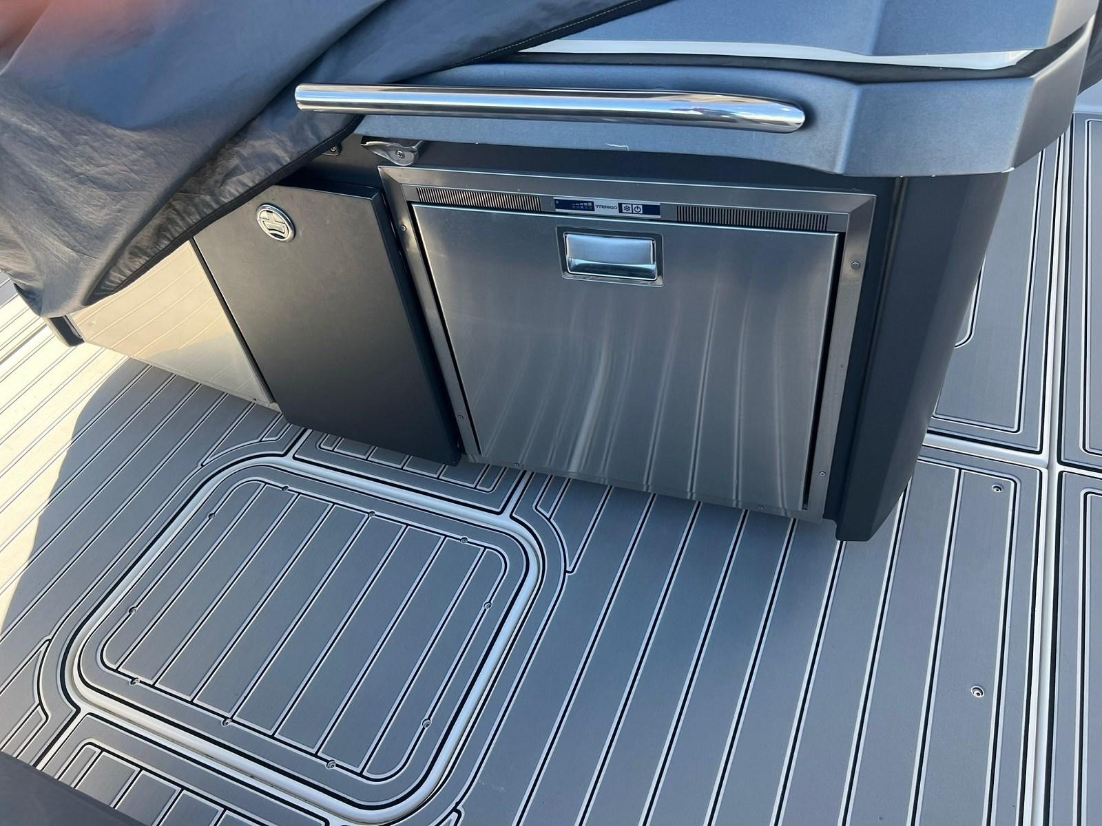 2 Douche de cockpit, Propulseur d'étrave (JET THRUSTER HOLLAND MARINE), Lavabo dans le cockpit, Spots sous-marins, Passerelle (in carbonio), Prise de quai, Guindeau électrique, Echelle de bain, table de cockpit, T-Top.