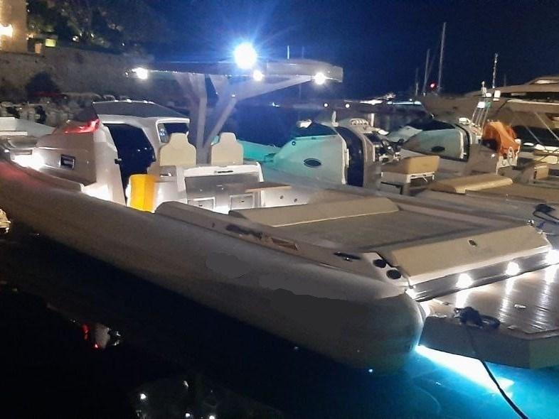 Ancre (acciaio inox), Eau sous pression (con polmone), Passavant en teck, Douche de cockpit, Propulseur d'étrave (180 mm), Éclairage de courtoisie, Spots sous-marins (poppa), Plateforme arrière (in Teak), 2 Pompe de cale automatique, Cockpit en teck, Guindeau électrique, Echelle de bain (Inox a scomparsa con gradini in Teak), table de cockpit (abbattibile in Teak), Corne, T-Top (in fibra di vetro con luci led).