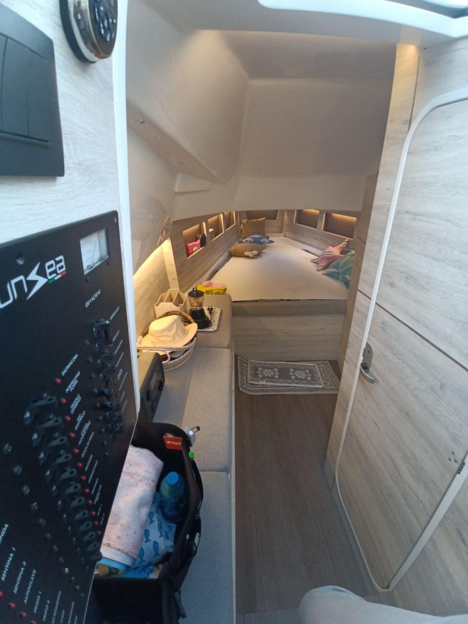 Air conditionné (cabina e bagno), Ballon d'eau chaude, Convertisseur (2000W con batterie dedicate), Prises interieures 12v (usb), Prises interieures 220v.