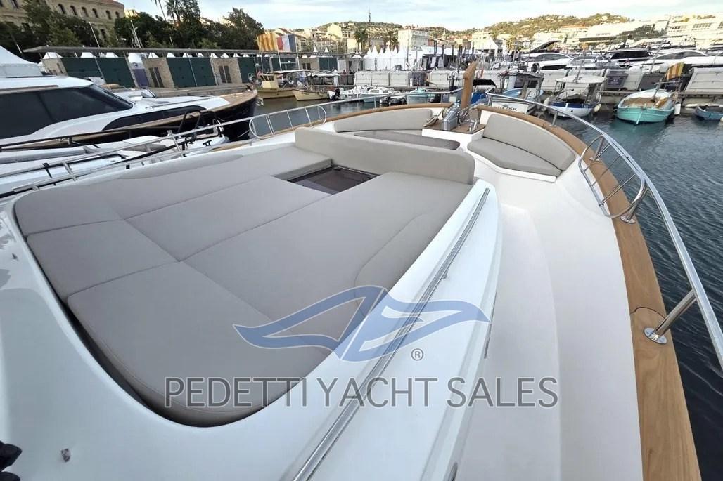 Alarme moteur, Alarme de pompe de cale, Eau sous pression, 10 Batteries (4 motori (95Ah), 6 servizi (100Ah)), Câble d’alimentation à quai, Filères, Double barre à roue, 2 Flaps électriques (Zipwake), Extincteur(s) fixe(s) (sala macchine), Éclairage de courtoisie, Moniteur de batterie, 6 Défenses, Passerelle (idraulica a scomparsa), Plateforme arrière (idraulica), Pompe de Vidange du Réservoir d’Eaux Usées, 3 Pompe de cale électrique, Porte latérale (teak), Cockpit en teck, Prise de quai, Connexion eau sous pression à quai, Répétiteur électronique, Guindeau électrique, Echelle de bain, table de cockpit.