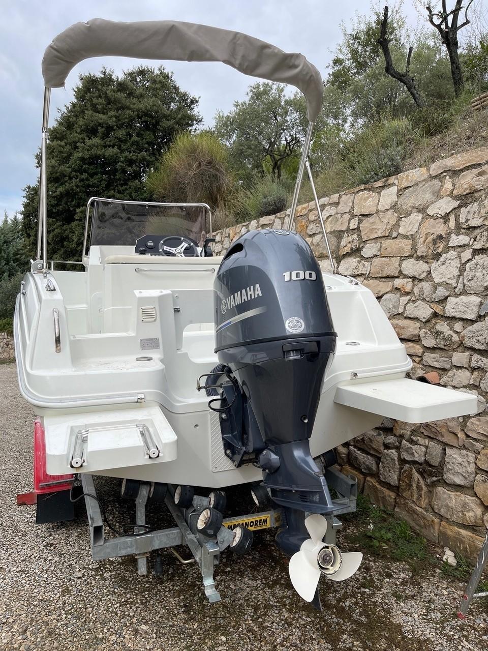 Tout équipé avec bain soleil, Leaning post, Bimini, sondeur Garmin neuf et sa remorque freinée équipée d’un treuil électrique.