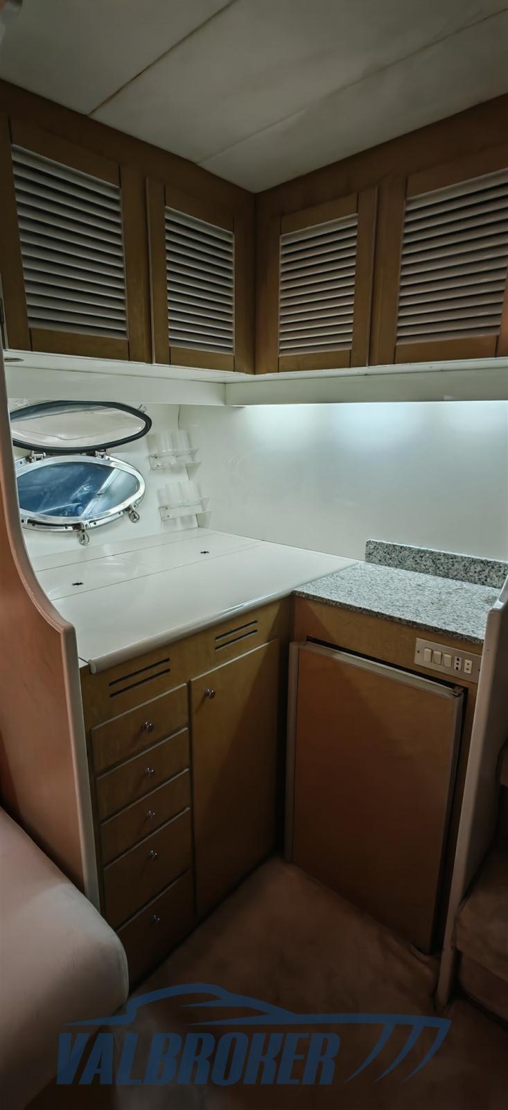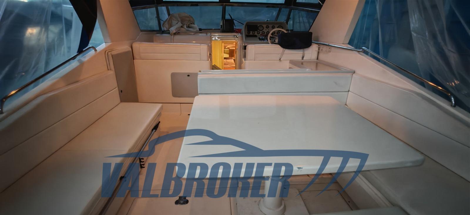 Coque puissante et solide avec de hautes remparts pour protéger le cockpit. Cabine avant et salle de bain séparée, salle à manger décapotable. De nombreuses options sont installées : climatisation, générateur, propulseur d’étrave, radar. Bateau sur la terre ferme pour le stockage hivernal.