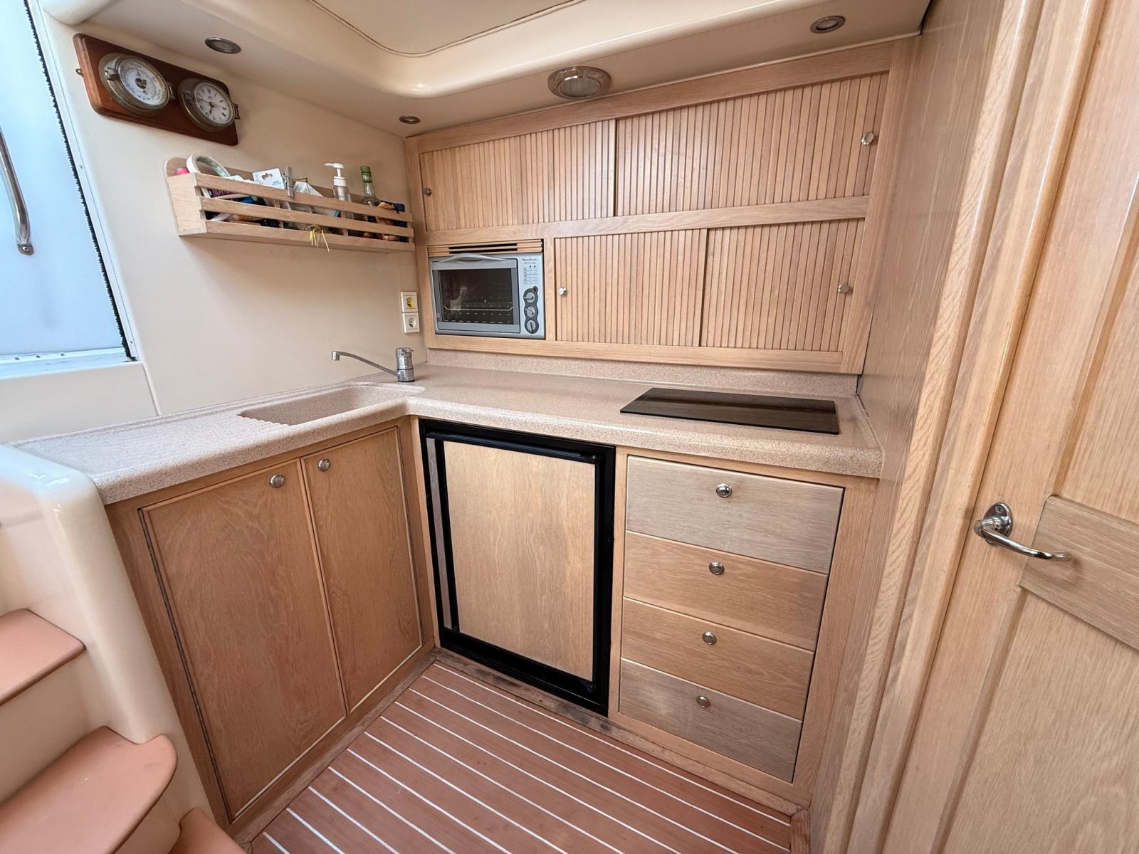 Équipée d’un générateur de 6,5 kW, d’une électronique complète, d’une passerelle hydraulique et d’une climatisation, elle offre des espaces bien organisés et une excellente qualité de vie à bord