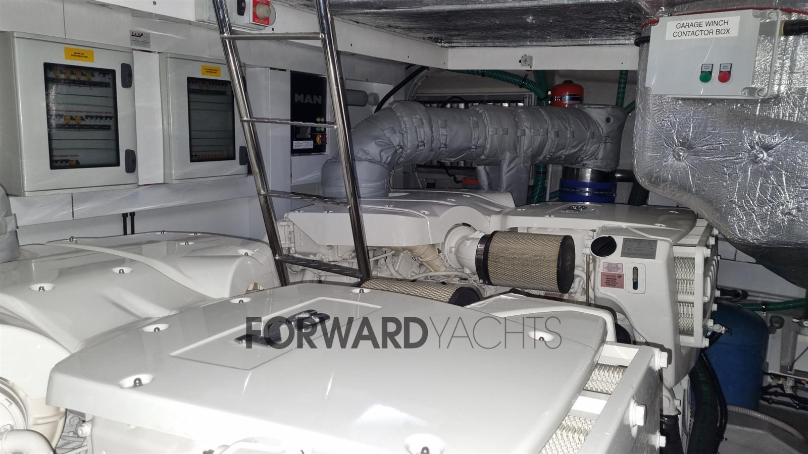 2 x 1200 Hp V8 MAN. Aménagement 3 cabines (6 personnes) + équipage.