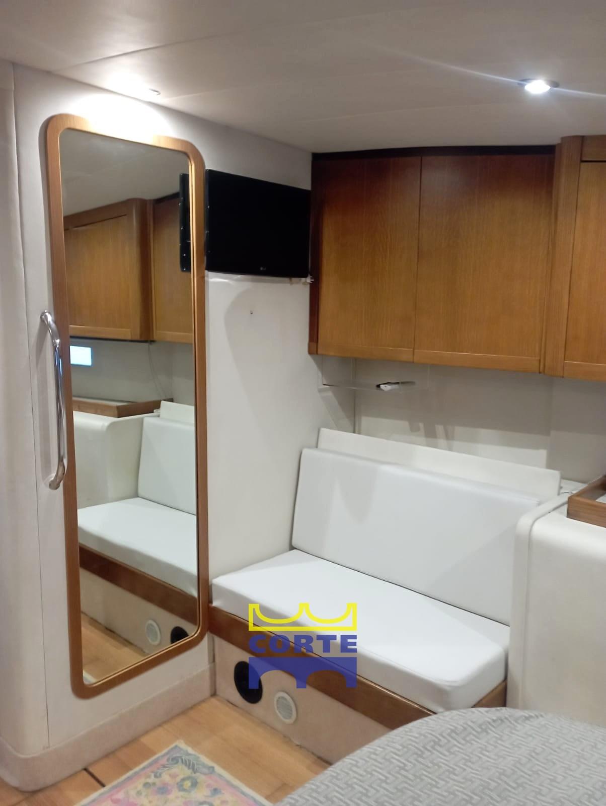 Eau sous pression, Douche de cockpit, Double barre à roue, Passerelle, Plateforme arrière (elettroidraulica), Porte latérale, Cockpit en teck, Prise de quai, Connexion eau sous pression à quai, Guindeau électrique, Echelle de bain, table de cockpit, Corne, 2 Winch électrique.