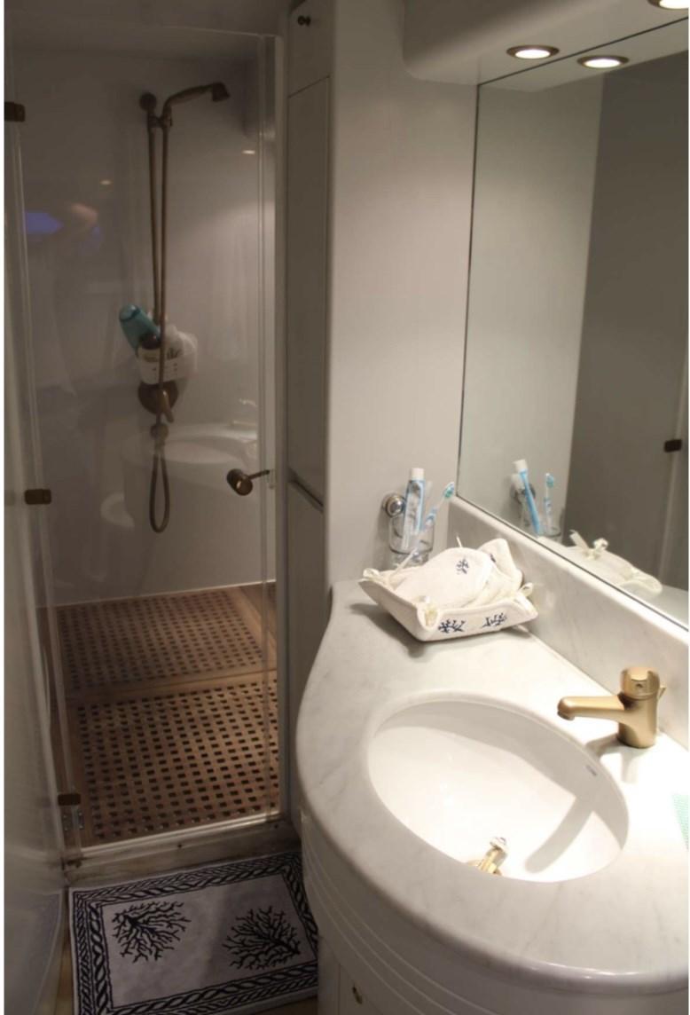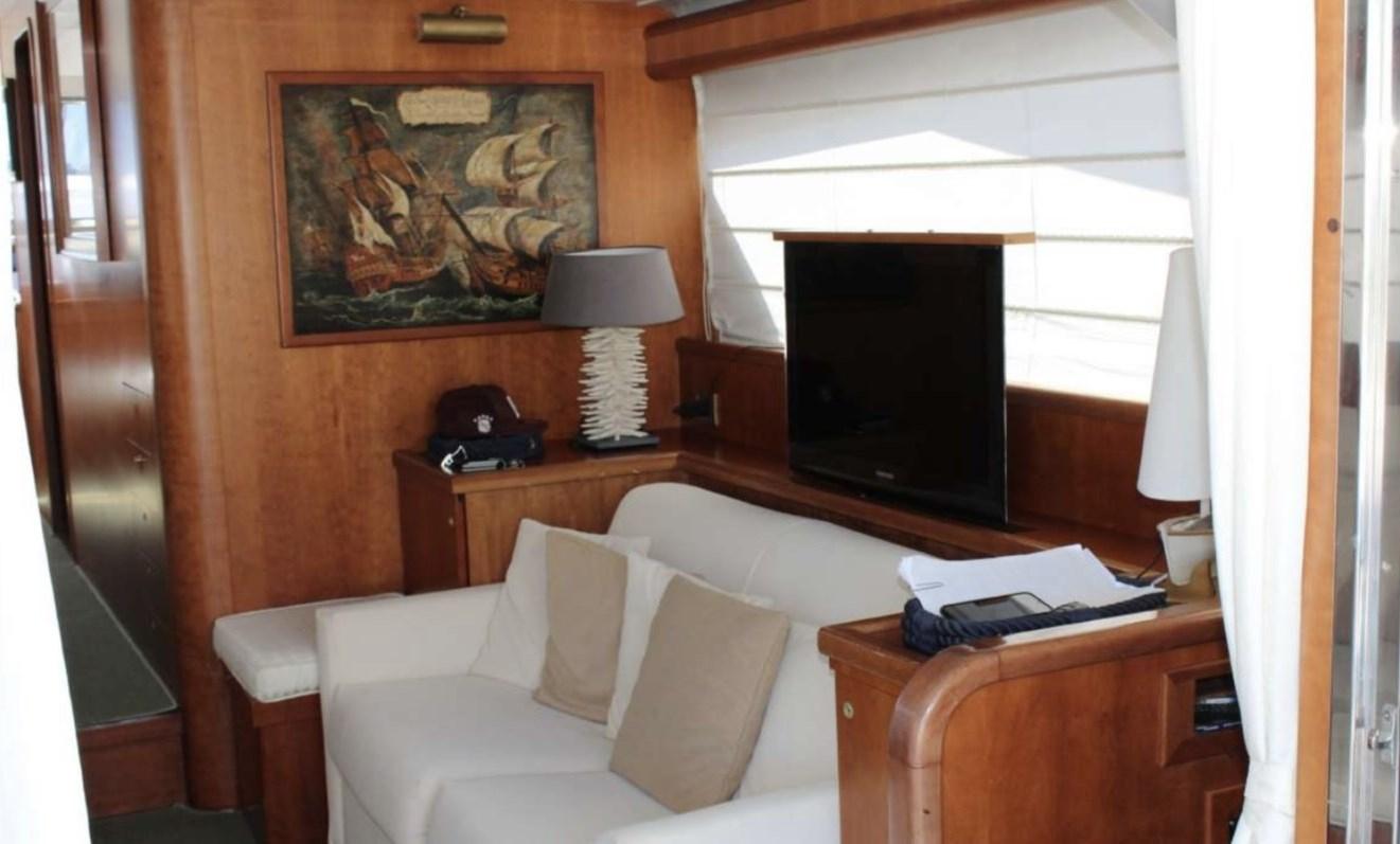 Alarme gaz, Alarme moteur, 2 Ancre, Eau sous pression, Système de vidange, Passavant en teck, Douche de cockpit, Double barre à roue, Hélice de rechange, Flaps hydrauliques, Bossoirs pour annexe, Extincteur(s) fixe(s), Passerelle, Plateforme arrière, Pompe de cale automatique, Pompe de cale manuelle, Porte latérale, Cockpit en teck, Prise de quai, Guindeau Hydraulique, Echelle de bain, Selles pour Annexe, table de cockpit, Annexe, Corne, Winch électrique arrière, Winch électrique avant.