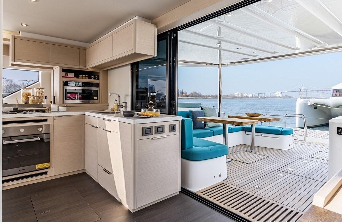 LAGOON 55 est un catamaran conçu pour offrir une vue inégalée sur la splendeur de la mer, avec une attention particulière à la circulation à bord.