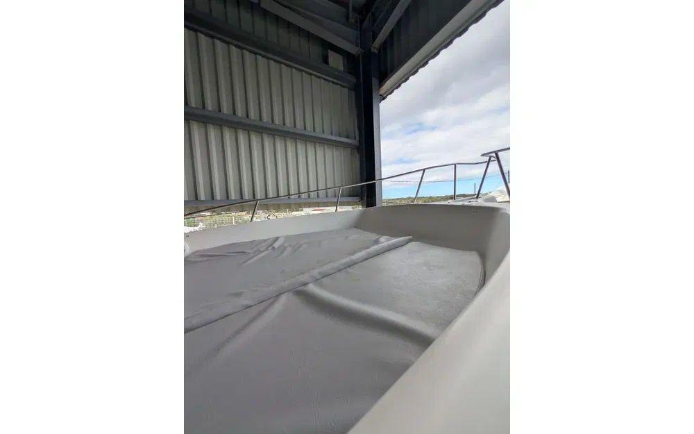 Le bateau dispose d’un équipement complet et fonctionnel avec un guindeau électrique facilitant les manœuvres de mouillage, un T-Top apportant protection et confort en navigation, ainsi qu’un leaning post ergonomique au poste de pilotage. À bord, vous retrouverez également des douchettes eau douce et eau de mer, une échelle de bain intégrée aux plateformes arrière pour un accès facile à la mer, ainsi qu’une sellerie en bon état permettant de profiter pleinement des espaces de vie.