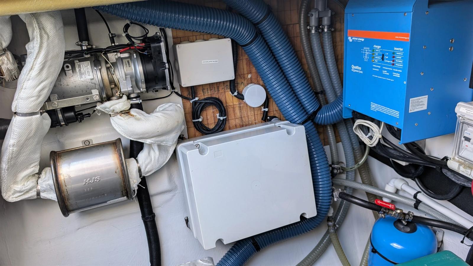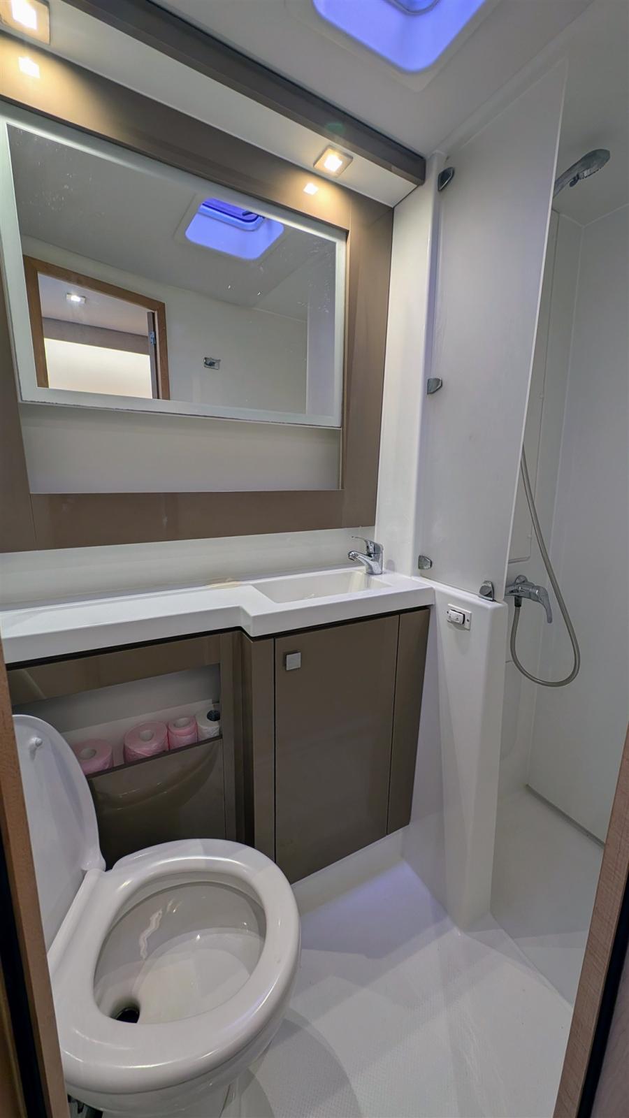 Ballon d'eau chaude (60l), Dessalinisateur (AQUABASE 180l), Indicateur du réservoir de carburant, Jauge de Réservoir d’Eau, Indicateur de pression d’huile, Indicateur de température moteur, Convertisseur (3KW), Plancher intérieur en bois, 6 Prises interieures 12v, 6 Prises interieures 220v, 4 Réservoir d'eau noire, Système d’Eau, Voltmètre, 4 Toilettes électriques.
