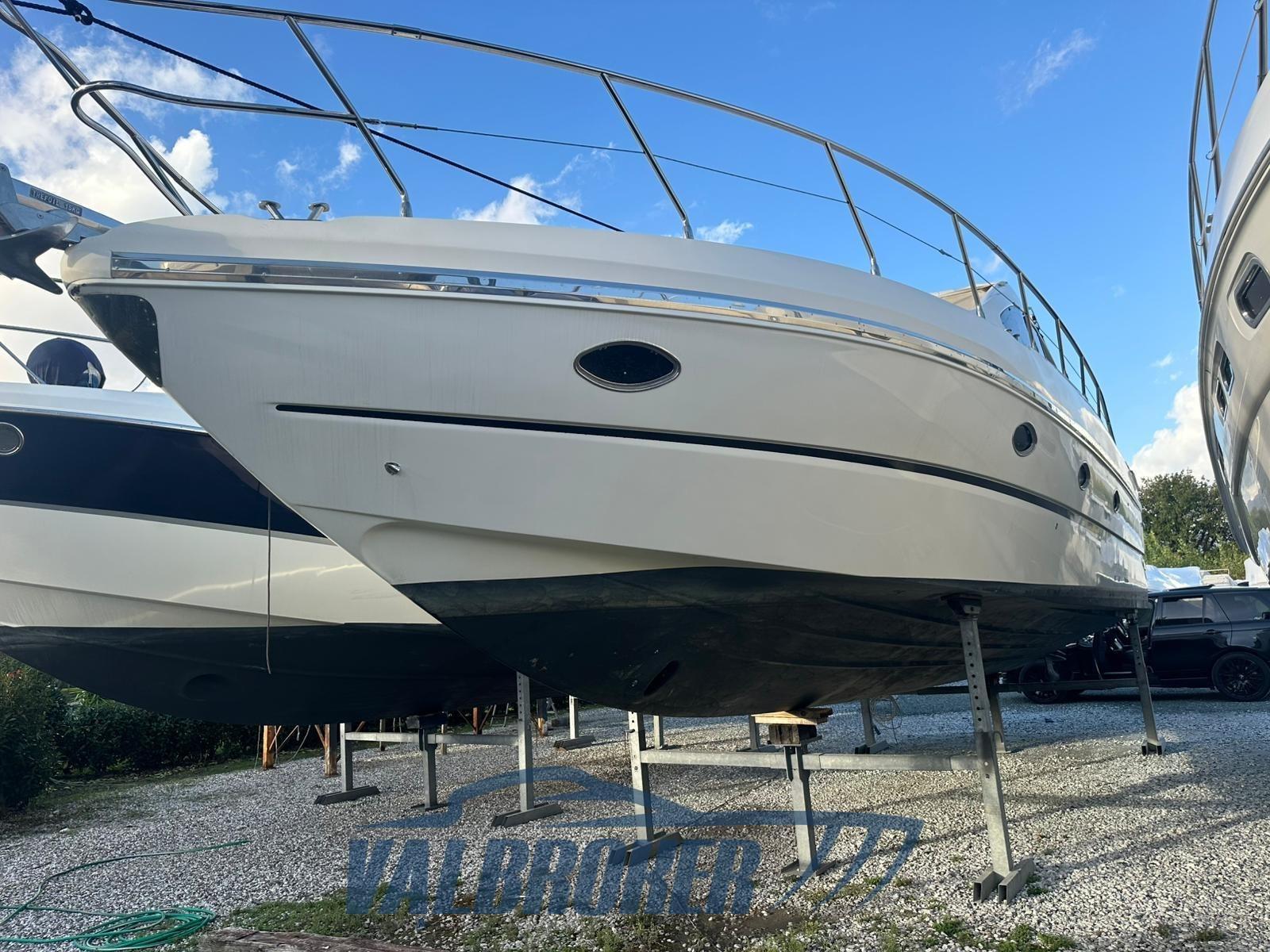 Croiseur sportif avec un espace de soleil à l’arrière ample et un cockpit spacieux. Année modèle 2010, première immatriculation 2011, propulsé par 2 Volvo Penta D6, 370 ch common-rail, diesel. Propriétaire unique. Il est vendu prêt pour la saison, avec un entretien moteur déjà effectué, de nouveaux échangeurs de chaleur et de l’antifouling. EN OPTION : climatisation chaud/froide, générateur MASE, propulseur d’étrave, pilote automatique. Actuellement sec à l’intérieur.