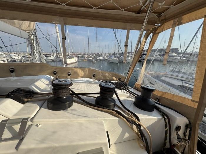 Alarme moteur, Eau sous pression, Douche de cockpit, Panneau solaire, Pompe de cale manuelle, Prise de quai, Guindeau électrique, Echelle de bain, table de cockpit.