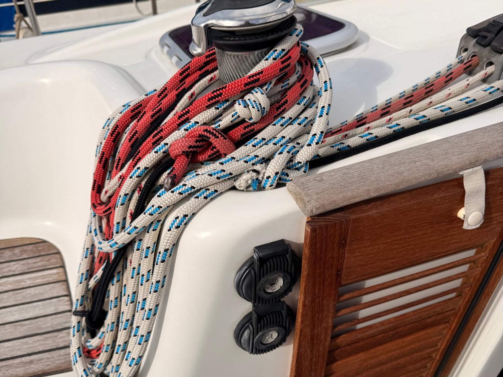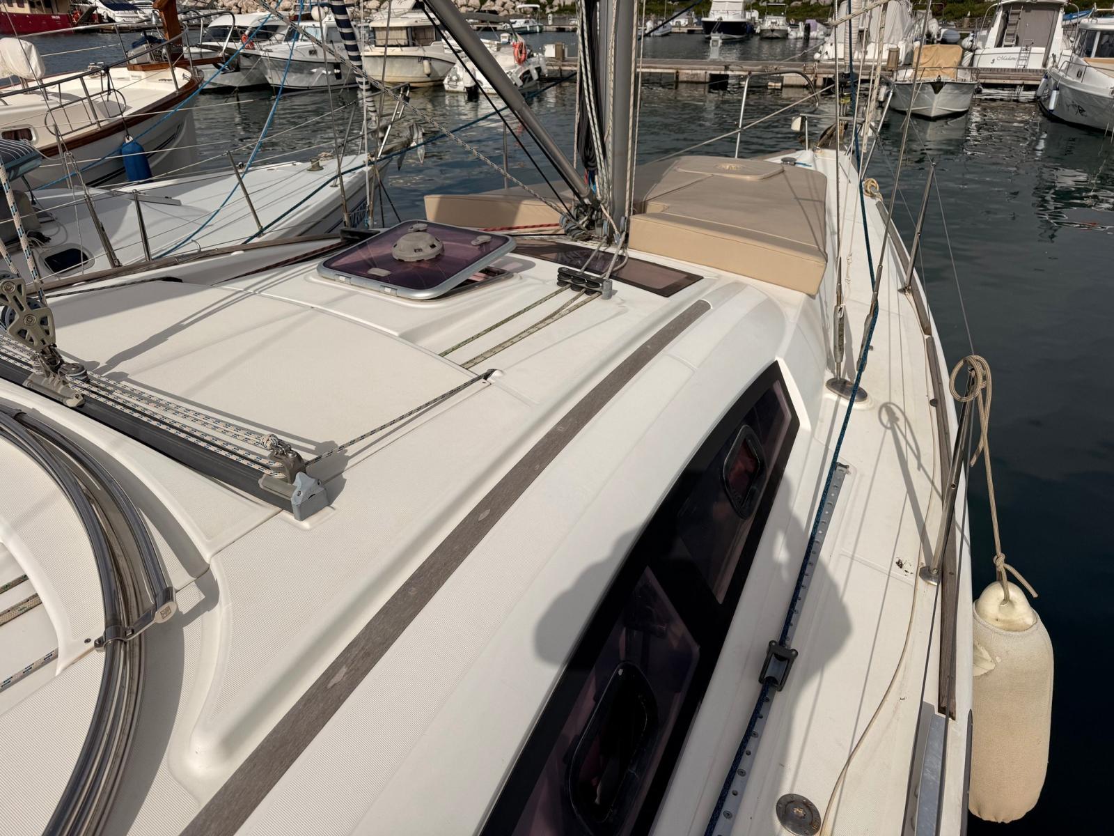 Alarme moteur, Ancre (ROCNA 12), Eau sous pression, Batteries (3 (2 SERVIZI X 140 AH - 1 MOTORE 95 AH)), Douche de cockpit, Double barre à roue, Défenses, Plateforme arrière, Pompe de cale manuelle, Porte latérale, Cockpit en teck, Prise de quai, Onduleur, Guindeau électrique, Gréement monotoron, Echelle de bain, Chaise support HB, table de cockpit, Winch (2 X HARKEN 40 - 2 X HARKEN 46).