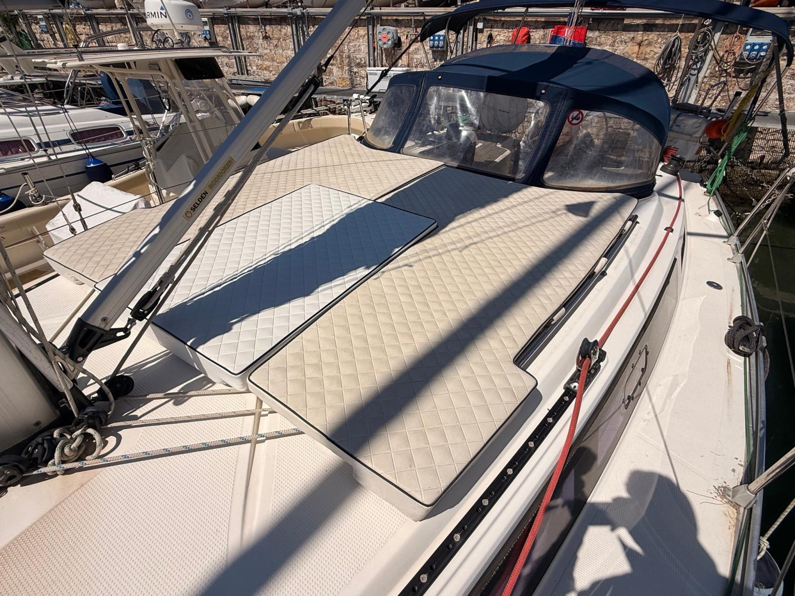 Ancre (DELTA 15 KG), Eau sous pression, Batteries (3 SERVIZI 1 MOTORE), Chargeur de batterie (VICTRON), Câble d’alimentation à quai, Douche de cockpit, Moniteur de batterie, Panneau solaire, Défenses, Pompe de cale manuelle, Porte latérale, Cockpit en teck, Prise de quai, Guindeau électrique, Gréement monotoron, table de cockpit, 6 Winch.
