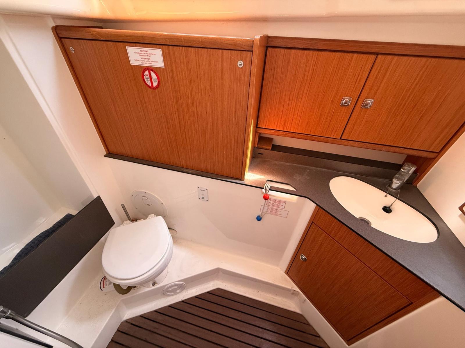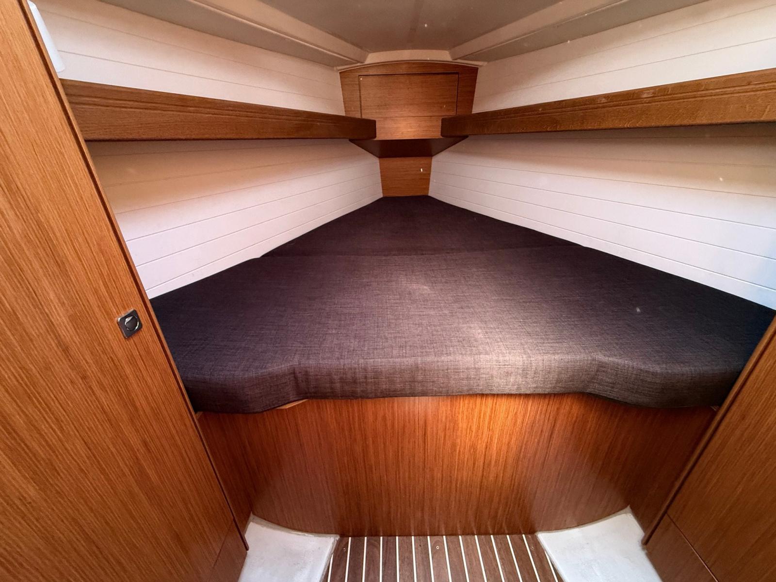 Équipé d’électronique complète Garmin, pilote automatique, grand-voile à battants et genoa enroulé, toilettes électriques, bimini et hotte à pulvérisation.