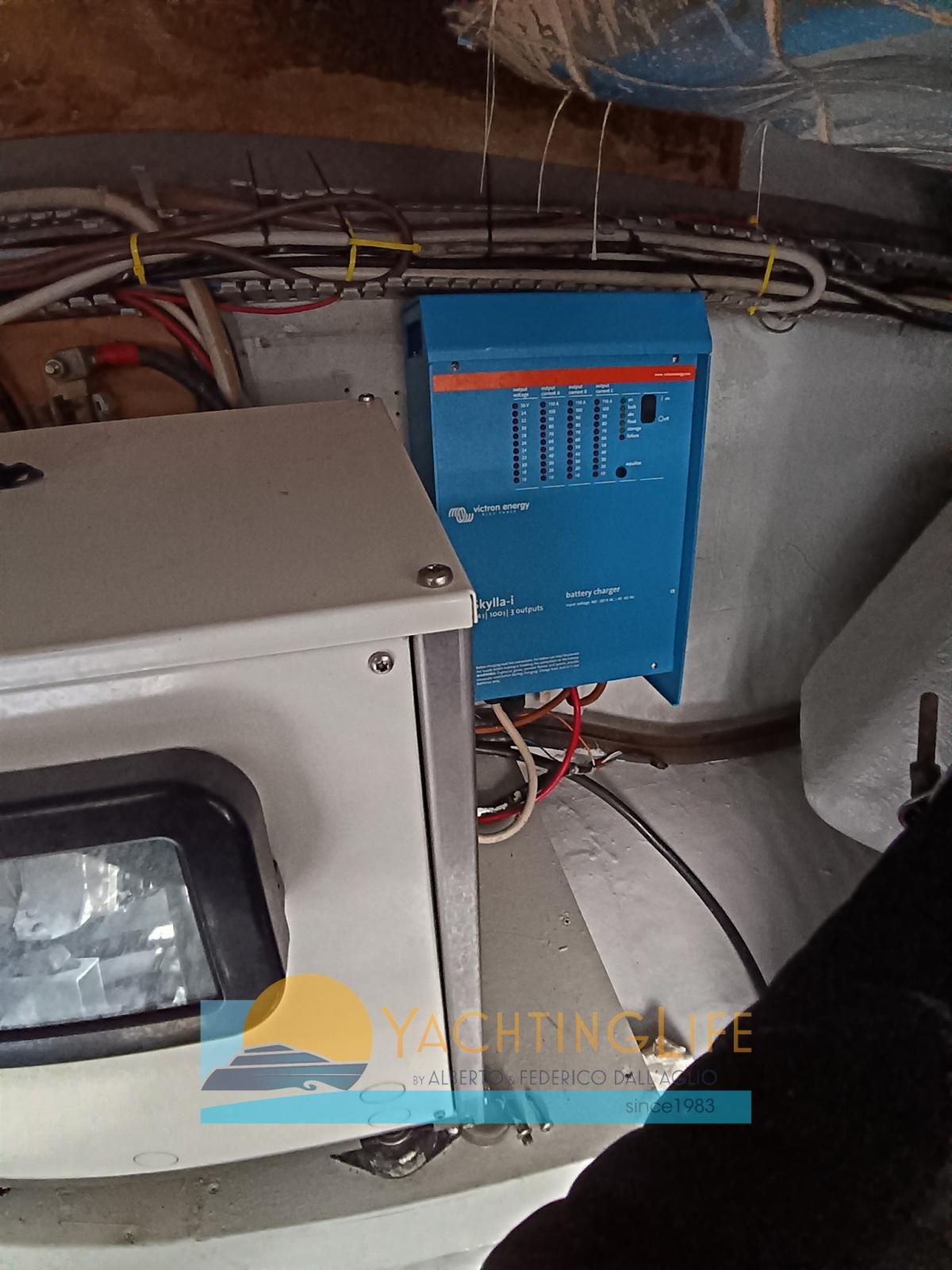 Alarme moteur, Alarme de pompe de cale, Eau sous pression, Douche de cockpit, Double barre à roue, Flaps hydrauliques, Indicateurs de flaps, Éclairage de courtoisie, Passerelle (idraulica), Plateforme arrière (allungata), Pompe de cale automatique, Porte latérale, Cockpit en teck, Prise de quai, Onduleur, Rollbar, Guindeau électrique, Echelle de bain, Corne.