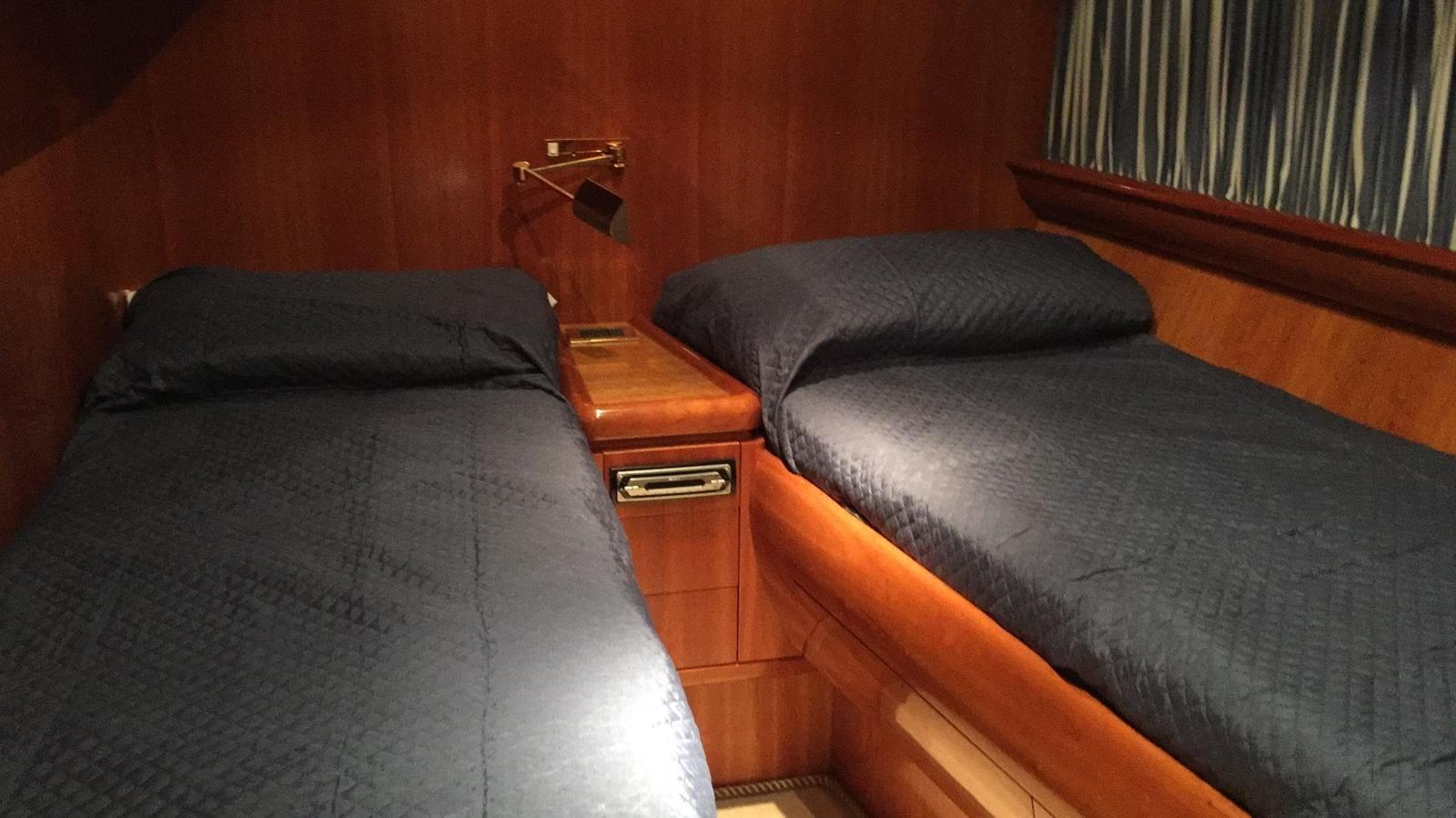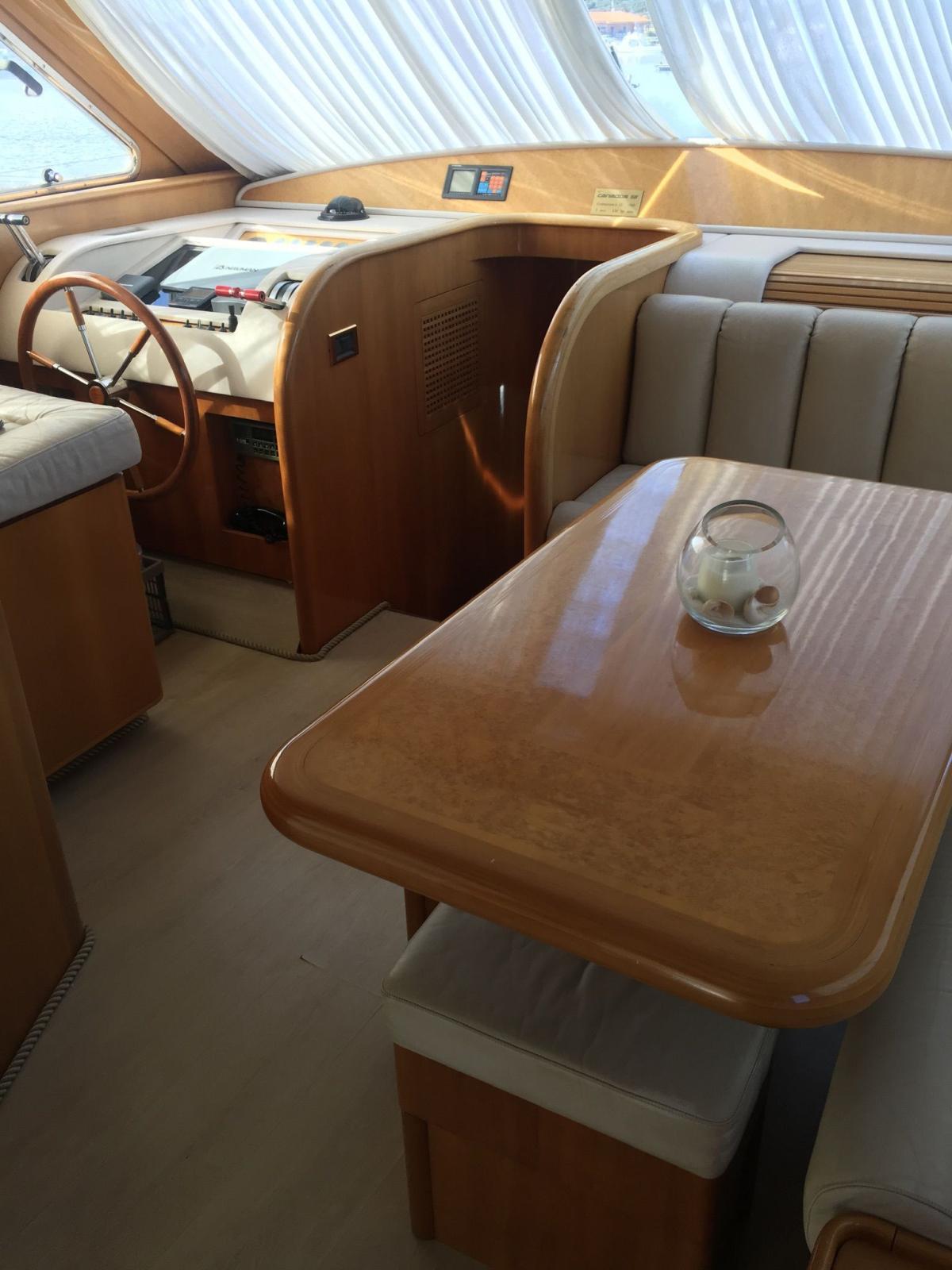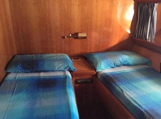 Cabine principale, deux cabines doubles et trois salles de bains, grande salle à manger avec cuisine de cuisine, timonerie et carte
