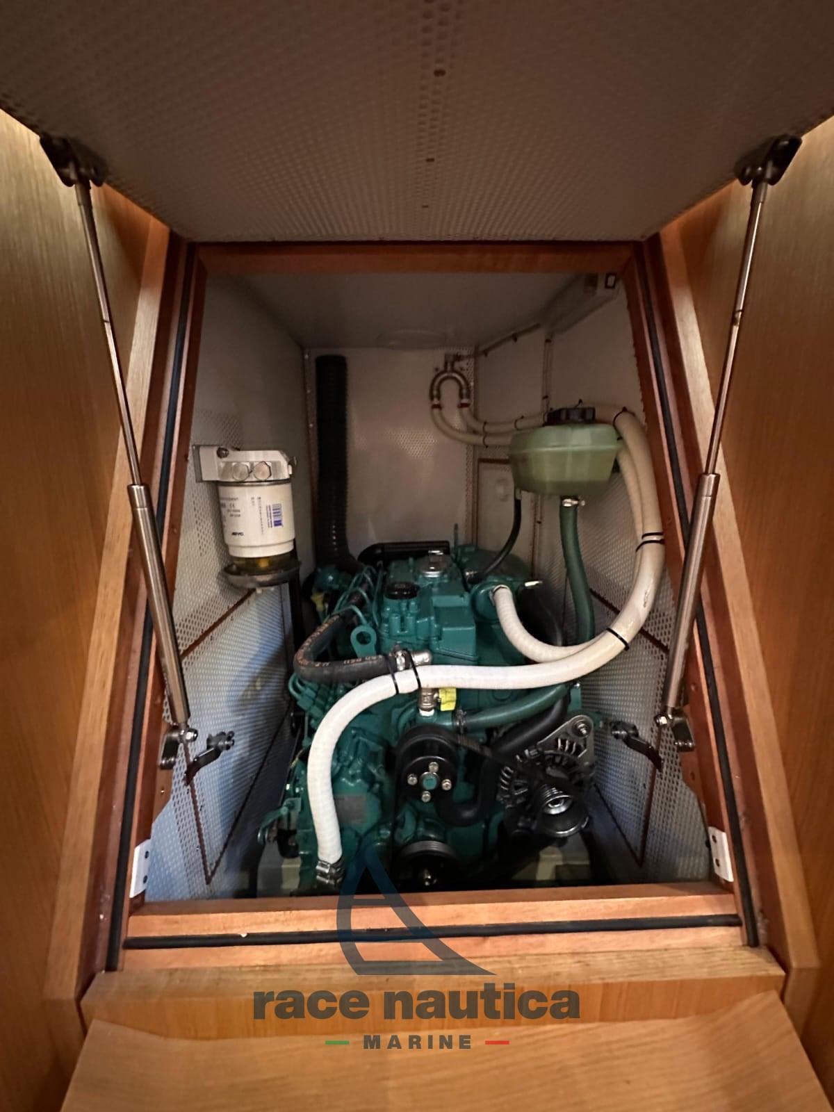 Moteur Volvo Penta D2-40 40 ch avec hélice pliante Flex-O-Fold, batteries 12V avec batterie dédiée et interrupteur pour démarrage moteur, chargeur Mastervolt, prise supplémentaire de 220V dans la cuisine, système TV (sans TV), système stéréo Fusion MS-UD750, toilettes électriques, réservoir de maintien de la piscine arrière, bouche d’aération chaude dans la salle de bain et chauffage à air Webasto Air Top 40 Evo.