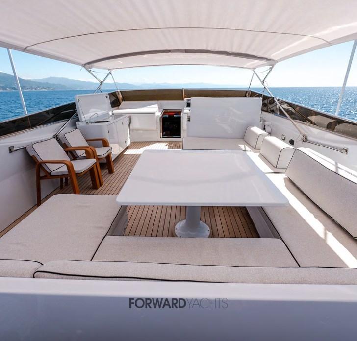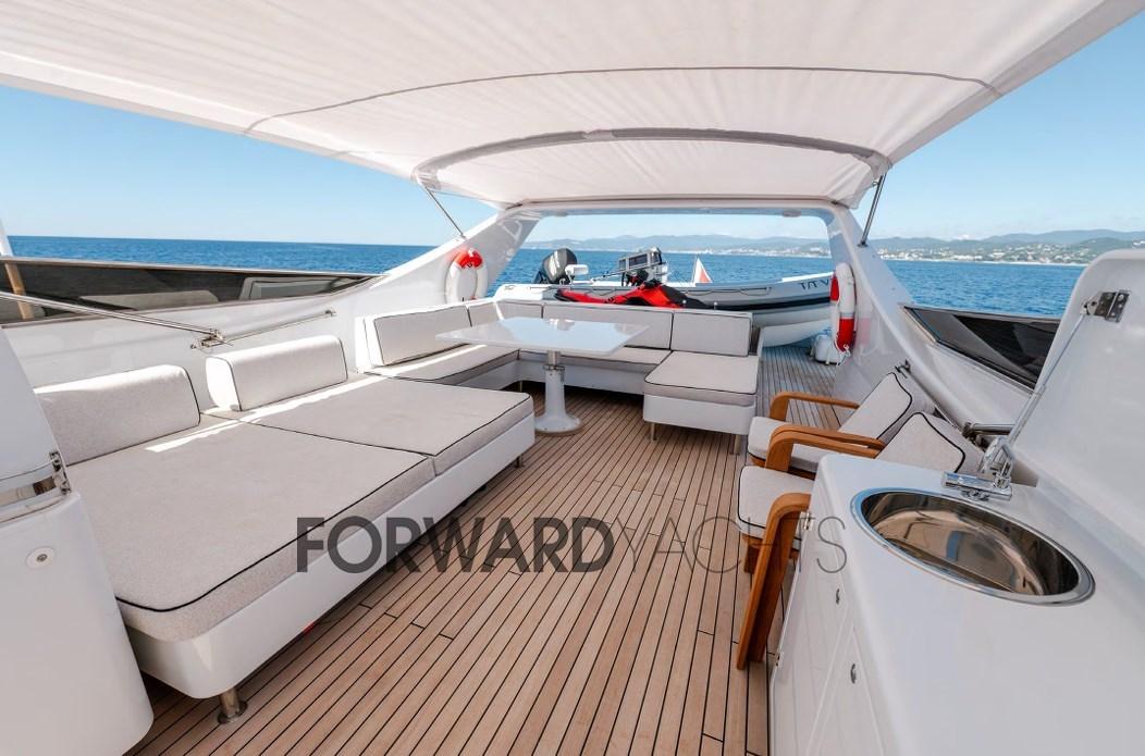 Le bateau est équipé de 2 moteurs MTU 2 300Hp et équipé de nombreux accessoires, notamment : stabilisateurs d’ailerons CMC, nouveaux générateurs Mase, nouveau dessalinisateur 400l/h, peinture de coque 2024, grue sur le flybridge et bien plus encore.