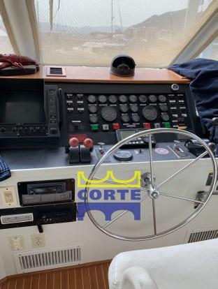Alarme gaz, Alarme moteur, Alarme de pompe de cale, Eau sous pression, Douche de cockpit, Flaps hydrauliques, Bossoirs pour annexe (a prua), Extincteur(s) fixe(s), Passerelle, Plateforme arrière (poppa), 6 Pompe de cale automatique, 5 Pompe de cale électrique, Porte latérale, Cockpit en teck, Prise de quai, Connexion eau sous pression à quai, Onduleur, Guindeau électrique, Echelle de bain, Corne, 2 Winch électrique arrière, Winch électrique avant.