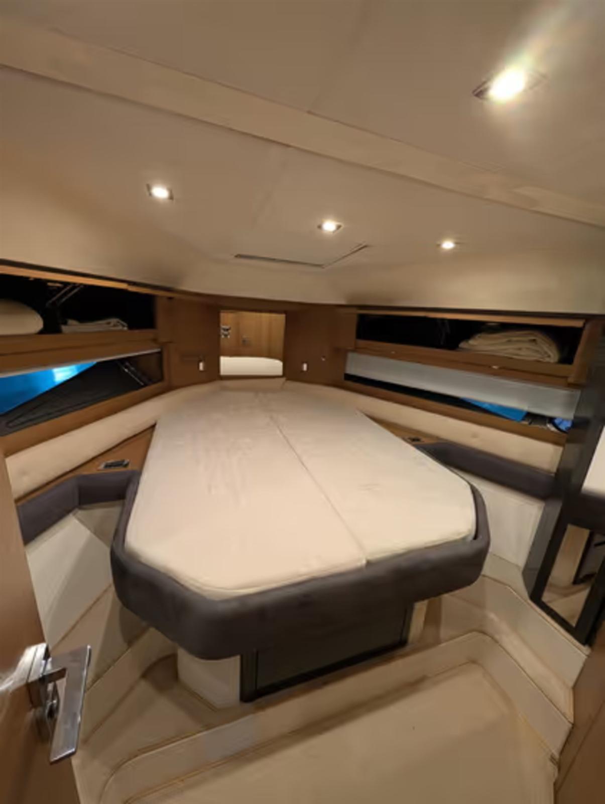 CABINE VIP À L’AVANT AVEC LIT DOUBLE ET SALLE DE BAIN ATTENANTE AVEC CABINE DE DOUCHE