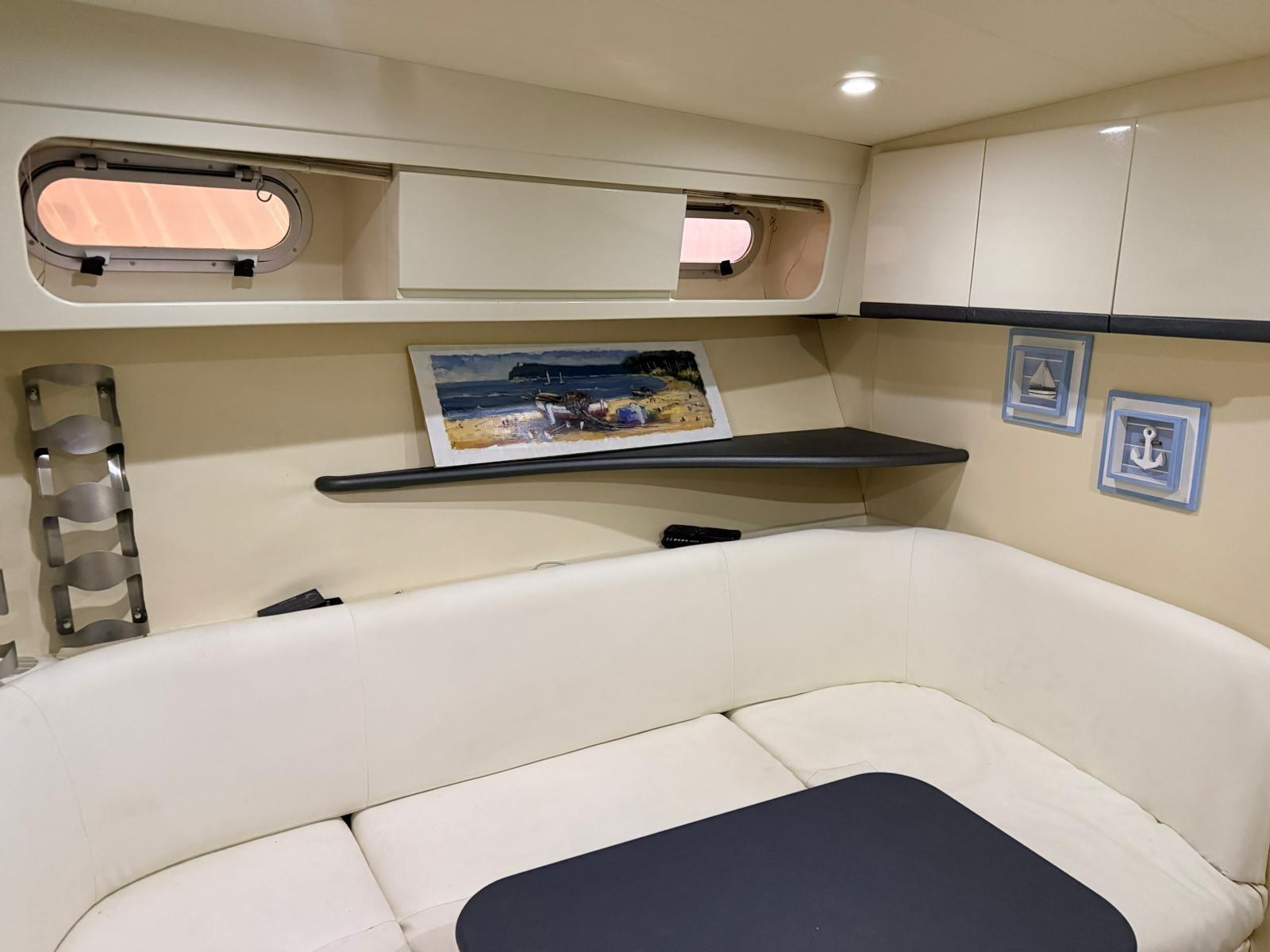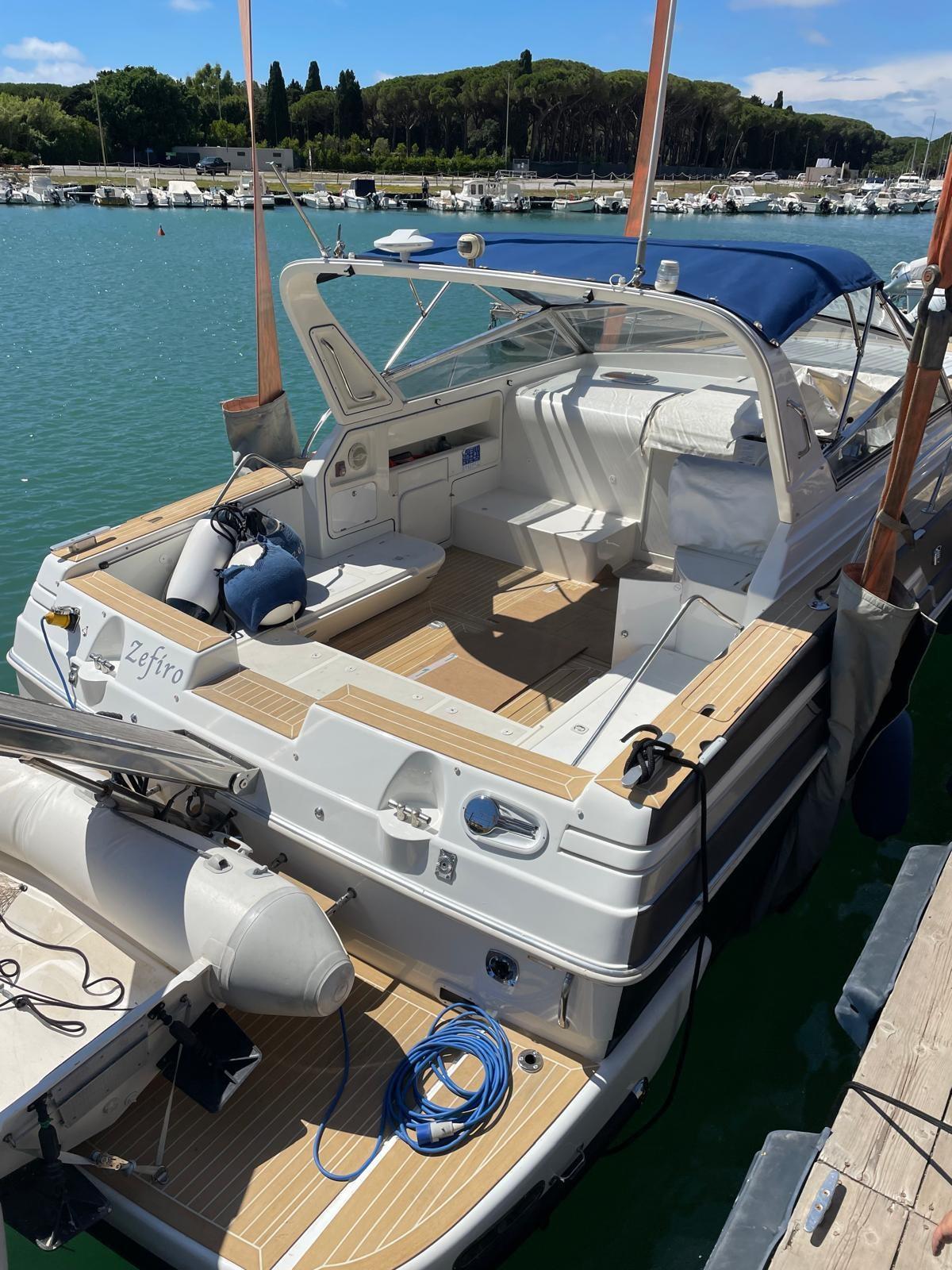 Alarme gaz, Alarme moteur, Alarme de pompe de cale, Alternateur, Ouverture du compartiment moteur électrique, Eau sous pression, 3 Batteries, Passavant en teck (FLEXITECHT), Couleur spéciale, Douche de cockpit, Flaps électriques, Extincteur(s) fixe(s), Indicateurs de flaps, Lavabo dans le cockpit, Éclairage de courtoisie, Spots sous-marins, Moteur hors-bord pour annexe, Défenses, Passerelle, Plateforme arrière, 3 Pompe de cale automatique, Pompe de cale manuelle, Pont en teck, Cockpit en teck, Prise de quai, Connexion eau sous pression à quai, Rollbar, Guindeau électrique, Echelle de bain, Selles pour Annexe, table de cockpit (ELETTRICO), Annexe (ARIMAR CHIGLIA RIGIDA 2,5), Corne, Pont en teck, Winch, Winch hydraulique.