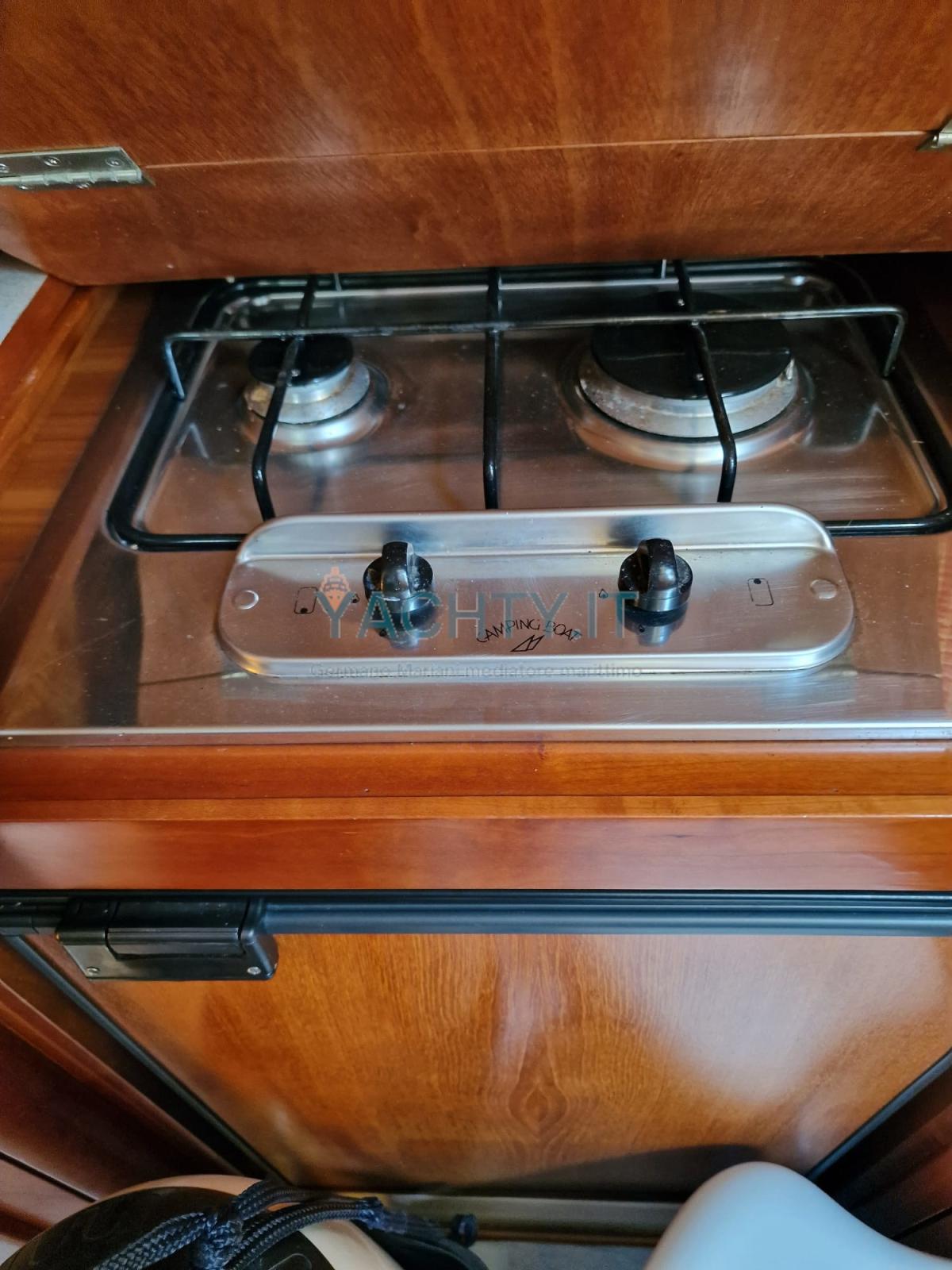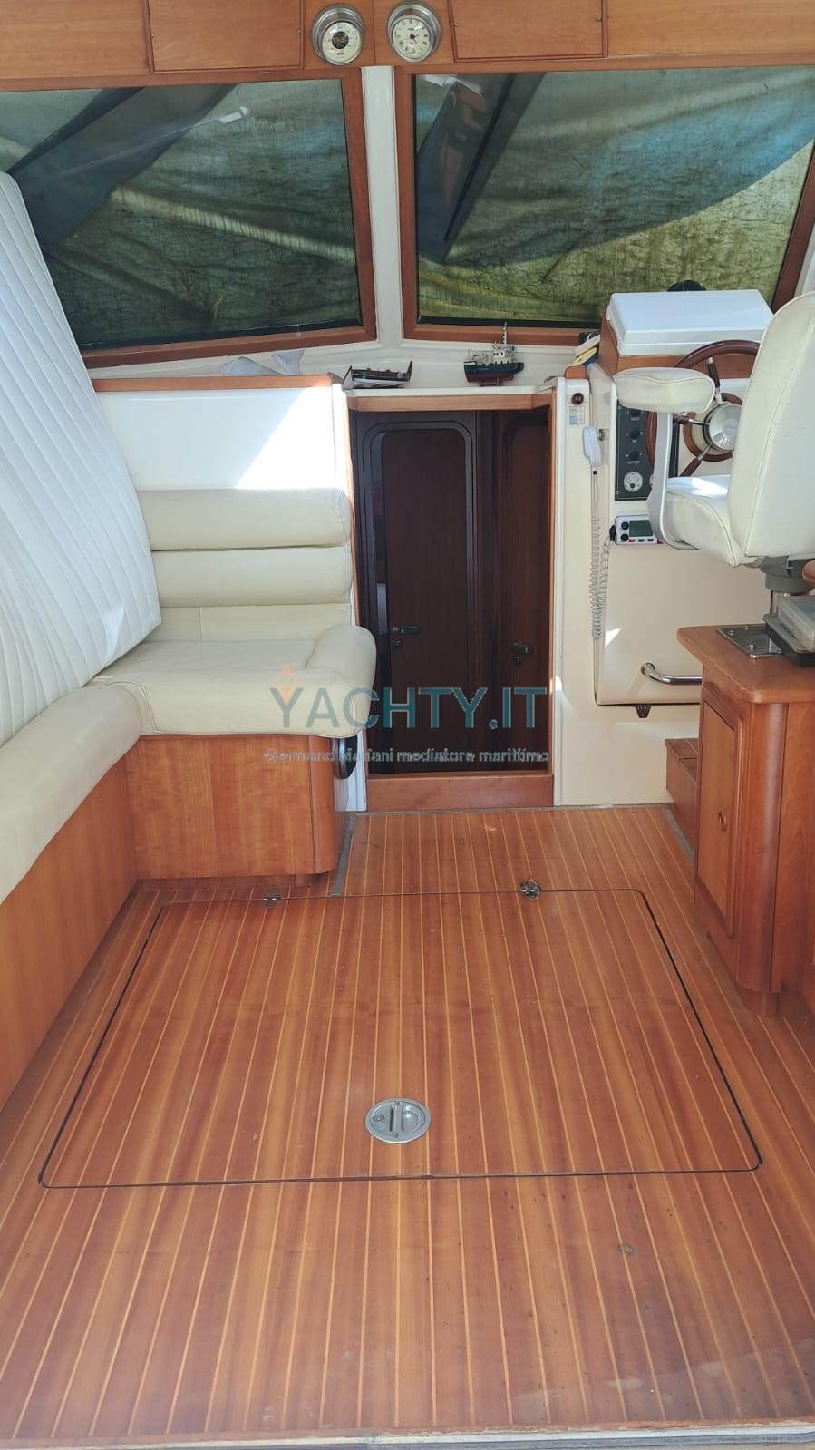2 cabines séparées, toit rigide avec porte, bien équipé de radar, pilote automatique, plancher intérieur en bois
