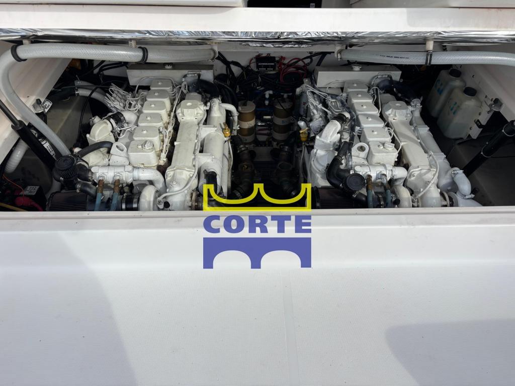 Alarme moteur, Alarme de pompe de cale, Eau sous pression, Douche de cockpit, Phare de poursuite, Hard top, Extincteur(s) fixe(s), Lavabo dans le cockpit, Plateforme arrière (di poppa), Pompe de cale automatique, Guindeau électrique, Echelle de bain, Corne.