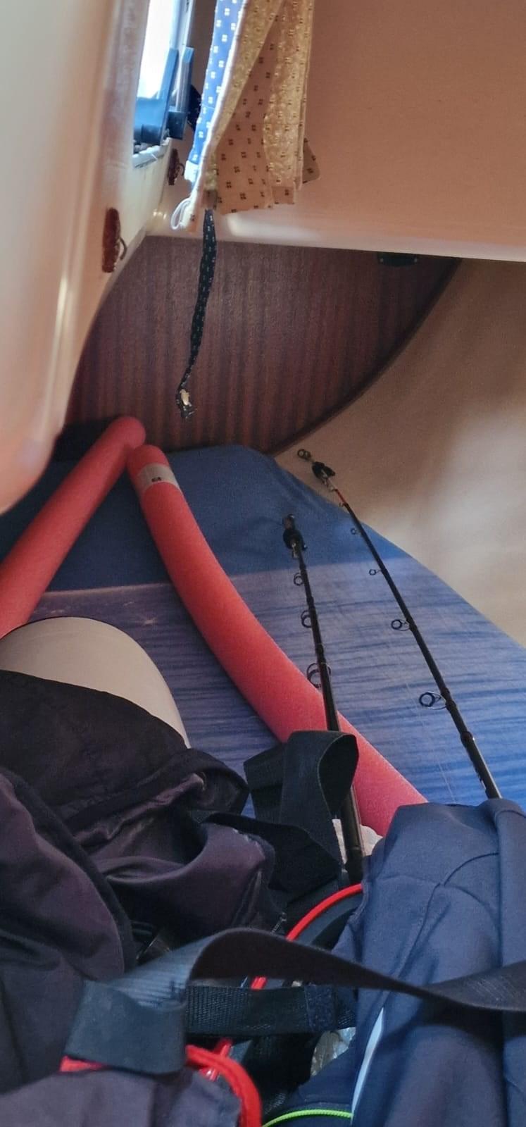 Ancre (catena 50 mt), 3 Batteries (2 servizi+ 1 motore), 6 Défenses, Plateforme arrière, Pompe de cale manuelle.