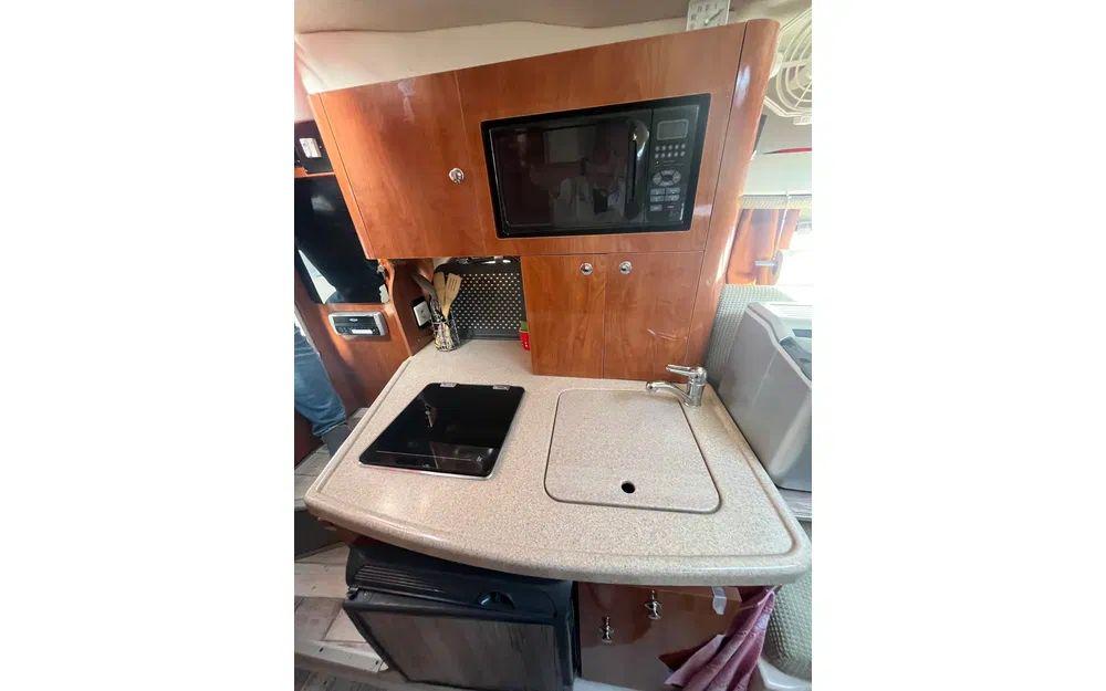 Ici, pas de compromis sur le confort et la sécurité. Ce bateau est équipé pour sortir par tous les temps et prolonger les séjours à bord : douchette eau chaude/froide, chauffe-eau, kitchenette équipée avec four micro-ondes et réfrigérateur, éclairage de cockpit et de courtoisie, portique arrière, taud de fermeture et même un propulseur d’étrave histoire de vous garer en douceur (adieu les manœuvres de panique). Côté navigation, vous pourrez compter sur le GPS, la VHF, flaps, pompe de cale électrique et bien sûr, tout l’armement côtier nécessaire : amarres, ancre, défenses, gilets de sauvetage, fusées de détresse – sécurité avant tout mais sans stress.
