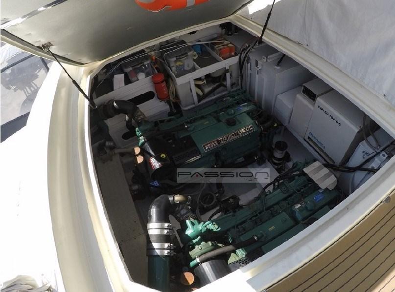 Baia Flash ouvert, année 2004, 2x480 Volvo Penta DIESEL (environ 9h30) qui, avec les hélices de surface, propulse ce bateau de près de 15 mètres à environ 40 nœuds de vitesse maximale !!