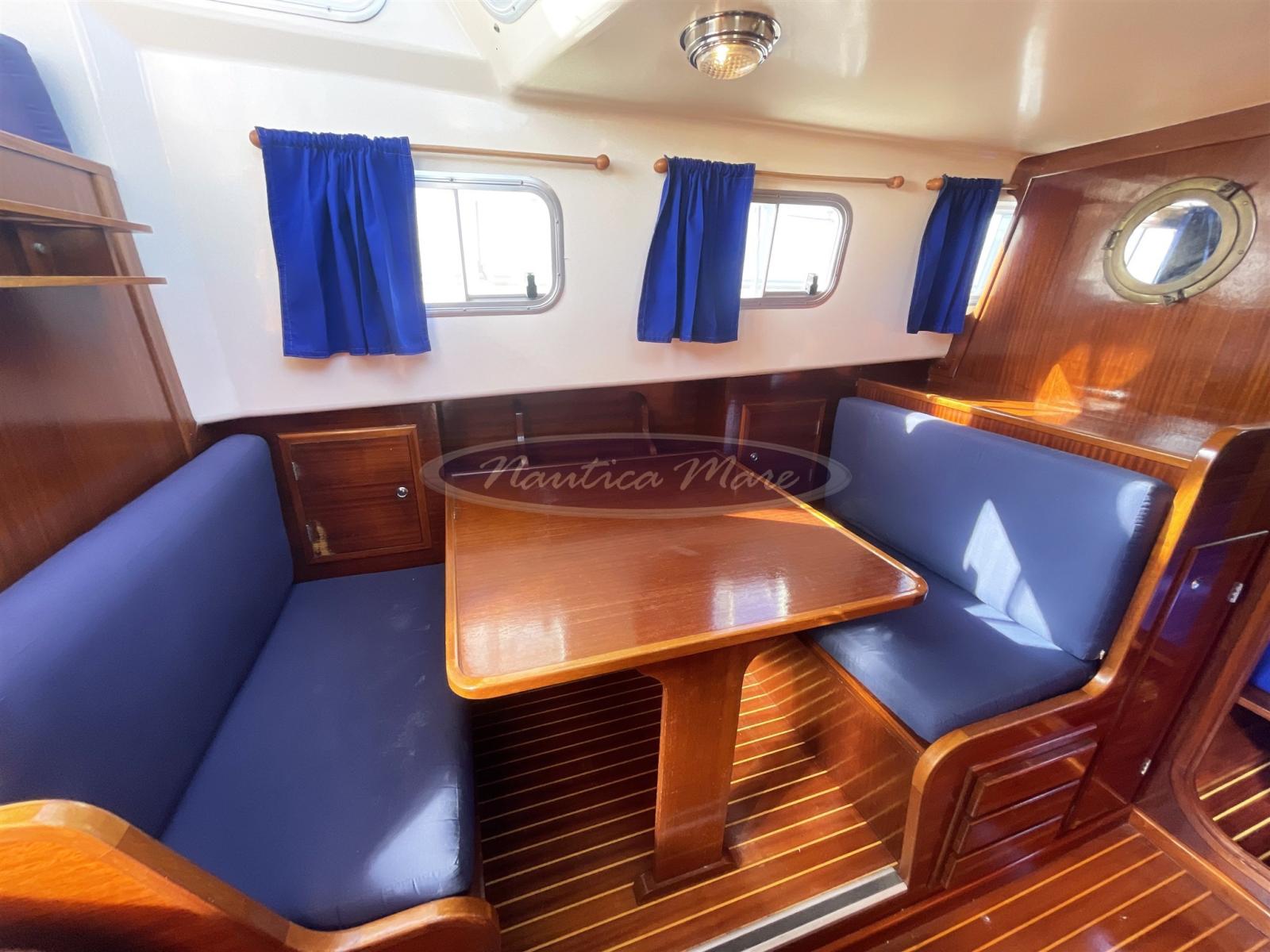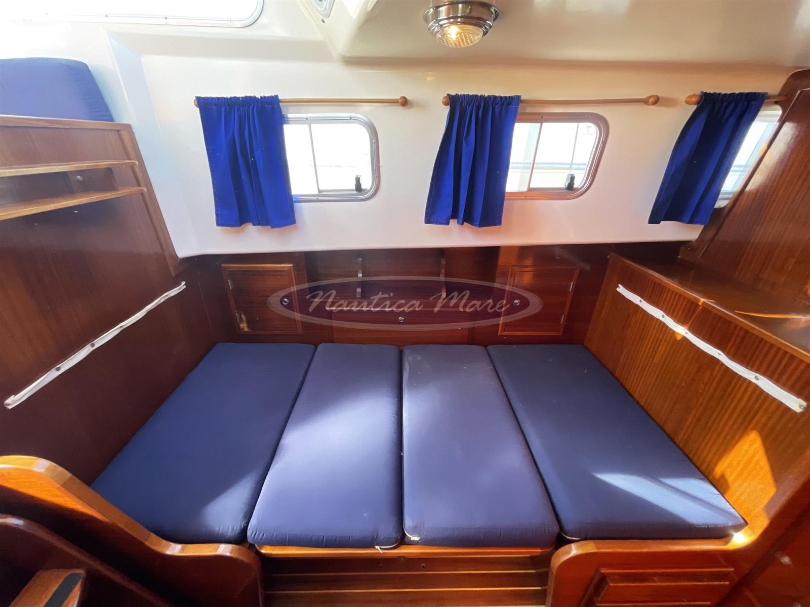 Bateau traditionnel, typique des îles Baléares, le Menorquin 45L à vendre est une « péniche » confortable qui entoure de vastes espaces à l’extérieur et sous le pont en seulement 9 mètres. De la poupe à la proue, on trouve une échelle confortable pour grimper depuis la mer avec une plateforme de bain et une passerelle pliante tout aussi confortable en acier et en bois pour débarquer ou monter depuis la terre. Le cockpit, avec une poupe arrondie, abrite deux sièges latéraux avec coussins, protégés par un grand auvent solaire monté sur une arche rétractable en acier inoxydable. Les grandes allées latérales menent rapidement et en toute sécurité à la proue, au treuil avec ancre et chaîne, ainsi qu’à la grande zone de bronzage avec des coussins. Dans le cockpit, la grande porte en bois et en verre, qui peut être complètement ouverte, relie l’extérieur à l’intérieur du bateau. Les intérieurs sont grands et lumineux, avec une saveur classique marine, avec beaucoup de bois et de coussins bleus. Le gouvernail est une véritable œuvre d’art. Les couchettes totales sont de 4/5, dont 2/3 dans la cabine avant en V, 2 dans la cabine à manger décapotable. Les deux pièces sont séparées par une porte en bois. La salle de bain est également séparée et équipée de douche et de lavabo, la cuisine est équipée d’un évier, d’un réfrigérateur et d’une cuisinière électrique. La station de timon, avec sièges confortables, dispose d’un canapé pour deux ou trois invités à côté. L’instrumentation électronique de navigation est complète et moderne : dernière génération de GPS Raymarine Axiom 9, sondeur d’écho, radio VHF, pilote automatique, radar. L’instrumentation des moteurs Yanmar est également complète et fonctionnelle. Les 2 moteurs diesel turbo Yanmar de 88 ch chacun, avec 1240 heures de fonctionnement, sont bien entretenus et entretenus. La vitesse maximale est d’environ 10 nœuds, la vitesse de croisière de 8,5. La consommation de diesel est très faible. L’autonomie généreuse permet de traverser longuement et confortablement sans s’arrêter. Nous recommandons une visite !