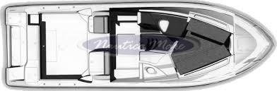 Sellerie complète, Coussins arrieres (compresa seduta a scomparsa a poppa e poggiagambe perimetrale nel pozzetto), Coussin avant, sellerie de cockpit, Tauds de fermeture T-Top (teli di chiusura hard-top), Taud de console, Taud de soleil (parasole nel pozzetto con pali inox).