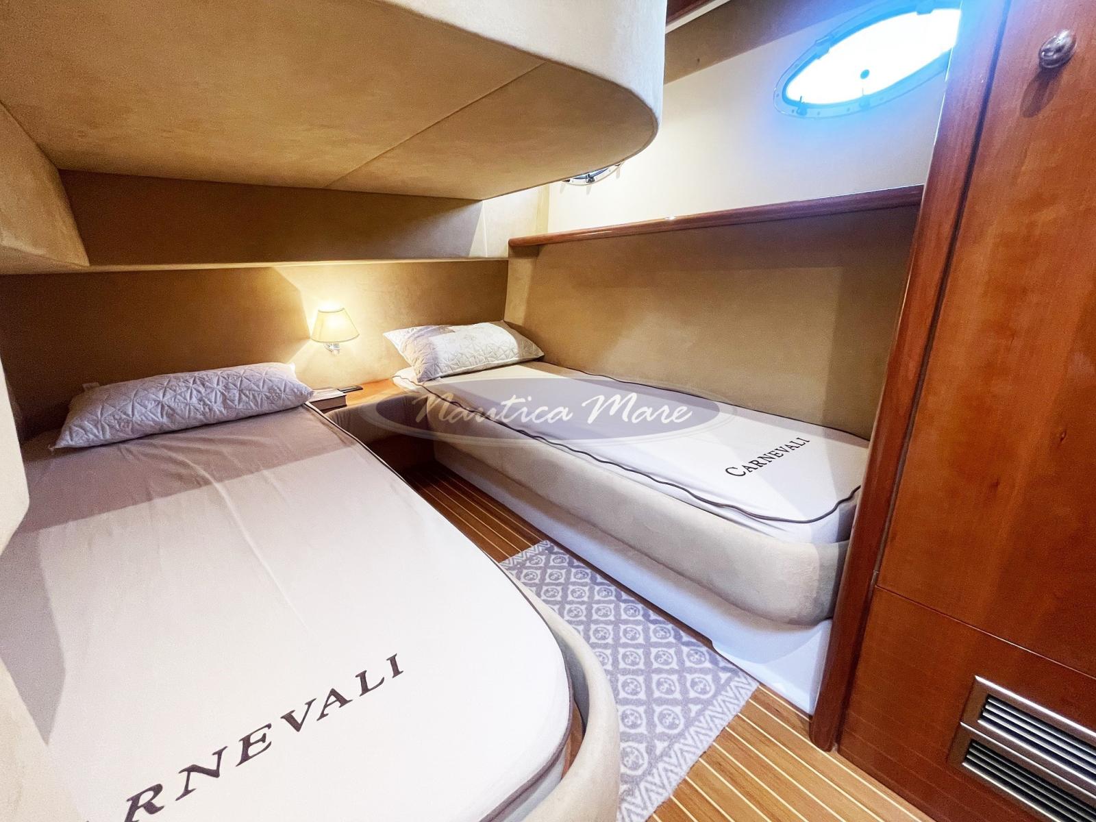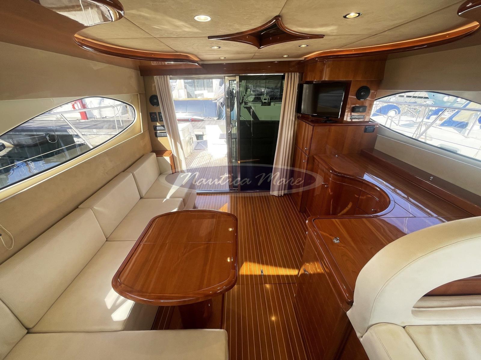 Sellerie complète, Coussins arrieres, Coussin avant (ampio prendisole), Sellerie de fly (ampio prendisole e divano), sellerie de cockpit, Matelas (nei letti delle cabine), Rideaux occultants, Tauds de pare-brise, Taud de console (sul fly), Taud de siège (sul fly), 2 Taud de soleil (doppio parasole sul fly), Rideaux (interne).