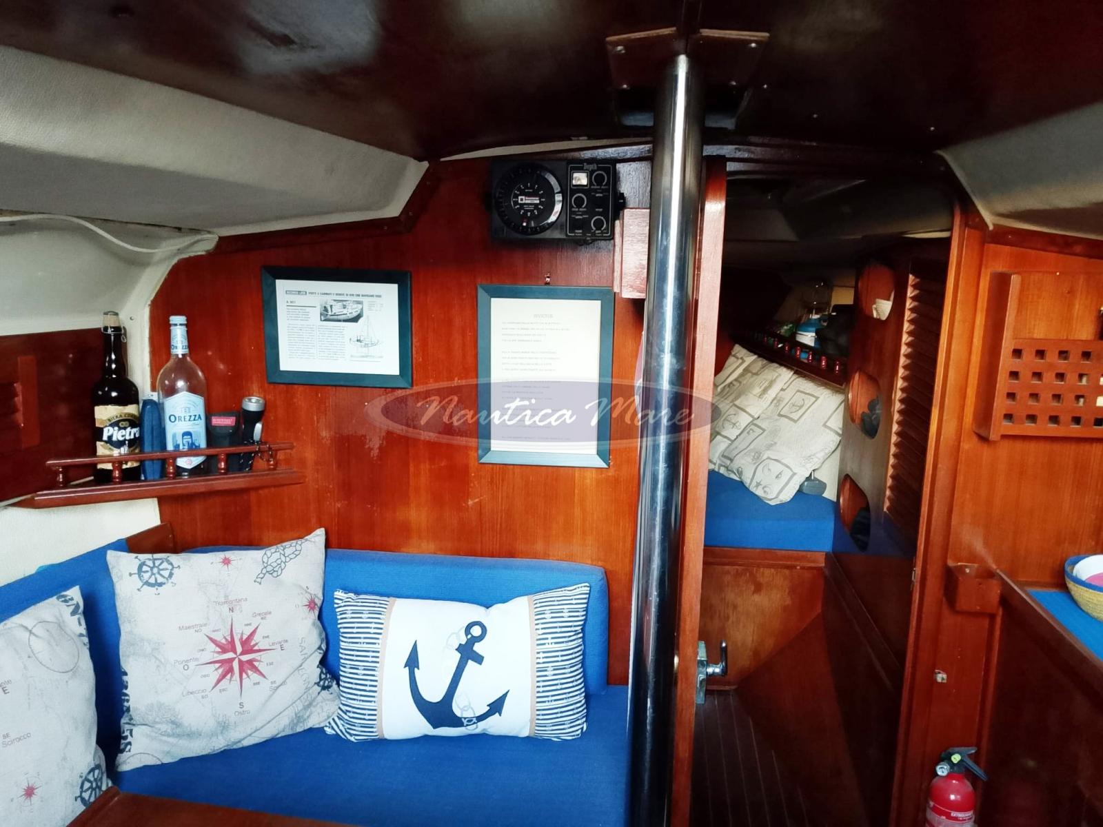 2 Ancre (Bruce 12 kg + Bruce 7 kg + catena), Eau sous pression, 2 Batteries (90 Ah), Panneau solaire (per ricarica batterie), 6 Défenses (con copriparabordi + cime ormeggio con molle), Passerelle, Plateforme arrière, Pompe de cale manuelle, Prise de quai, Echelle de bain, table de cockpit (richiudibile, in legno), Annexe (Lomac 2,40 mt), 6 Winch (con copri winch di colore azzurro).