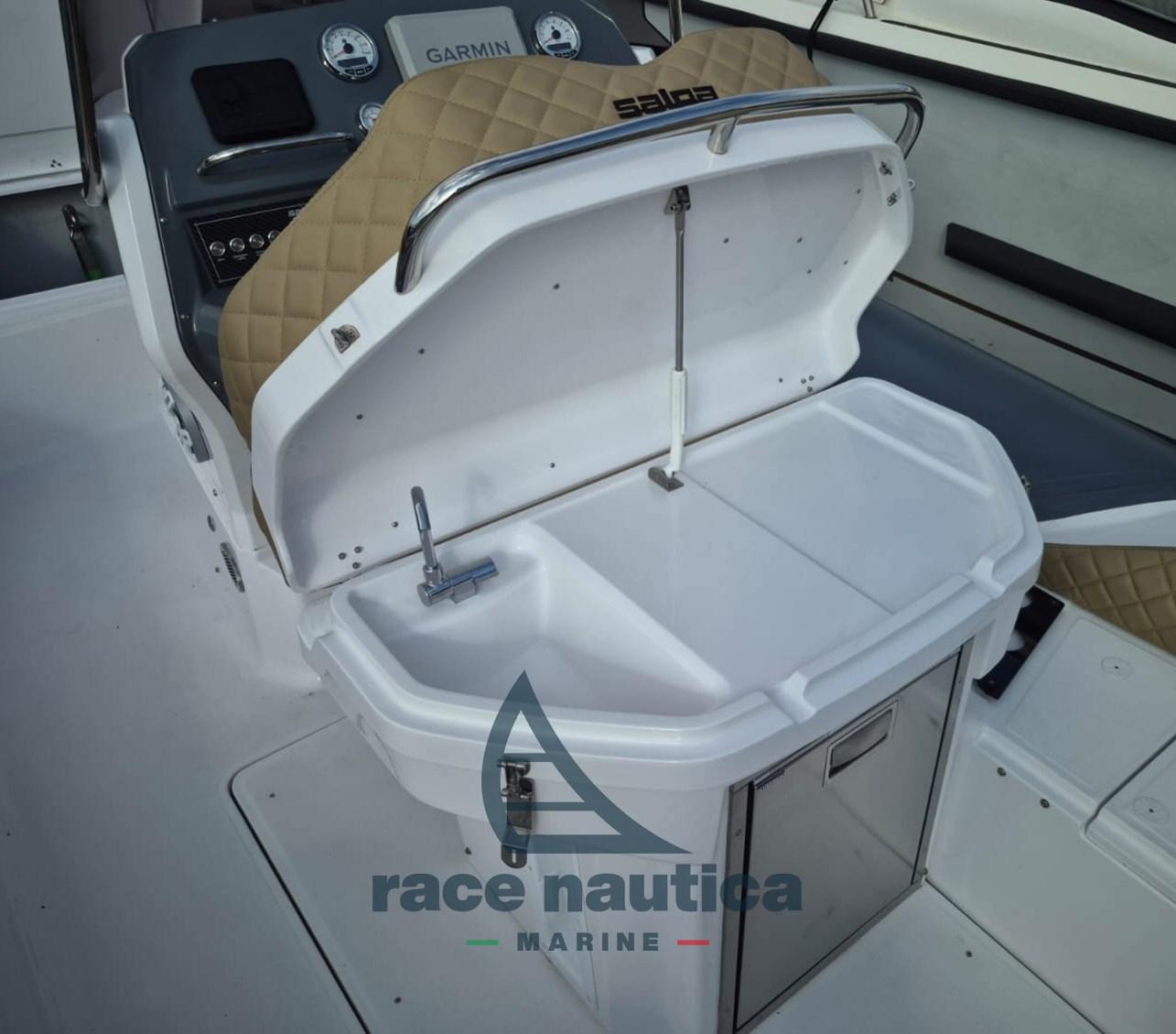 Salpa Yachts Soleil 24.5, en excellent état et disponible à la visite à Porto Verde - Scarlino (GR). Année 2024. Moteur Mercury V6 200 chevaux, année 2024 – avec environ 140 heures – toujours sous garantie jusqu’en 2027. Poids sans moteur : 1100 kg, poids moteur : 216 kg. Travail en acier assez poli, auvents en bon état, excellents robinets de mer, barre de sécurité rabattable, ensemble complet de coussins neufs, table de cockpit, réfrigérateur extérieur en acier, système de douche et lavabo, guindlard électrique avec commande de console, stéréo Bluetooth, réservoir d’eau avec pompe à pression et pomme de douche, traceur de cartes Garmin de 6' + ECO, traceur de cartes 9' + ECO, radio VHF, système double batterie, Kit de bain de soleil arrière, auvent en acier à la proue, barre de remorquage à ski, couvre-console, teck synthétique à la proue, kit de bains de soleil arrière, console et housse de siège de barre, copie du certificat CE, Déclaration de conformité. Il sera livré avec un entretien moteur effectué en avril 2026 par un atelier Mercury agréé. Rapport moteur réalisé par un atelier Mercury autorisé.