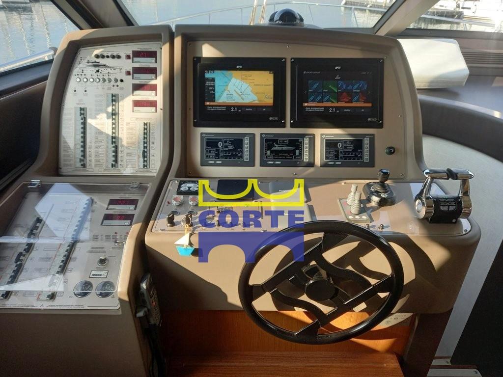 La passerelle visible du Ferretti 631 est en communication directe avec la zone de vie et est également accessible depuis la trappe extérieure, une solution généralement adoptée sur les grands bateaux.